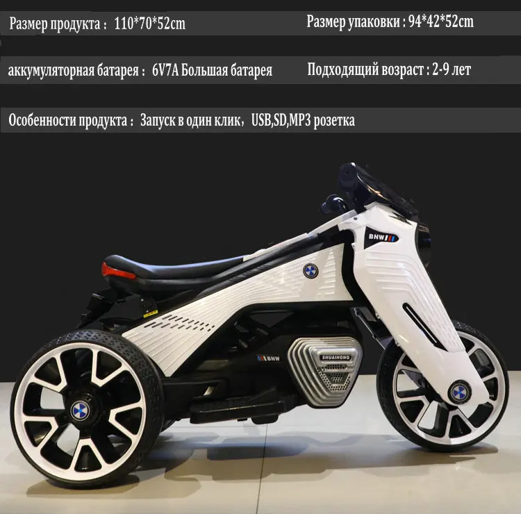 Описание продукта: Технические характеристики: индивидуальная упаковка Цвет: белый, красный, черный, синий, желтый Размер корпуса: 110 × 51 × 75 Посылка Размеры: 93 × 42 × 54 Вес нетто: 11,5 кг Вес брутто: 13,5 кг Конфигурация функций: аккумулятор 6V7A, регулировка громкости, дисплей питания, многофункциональный музыкальный плеер, разъем USB, разъем для tf-карты, разъем MP3, вперед, назад, красочные огни, умный Медленный запуск, двухприводный двигатель 390, динамическая музыка, имитация нескользящей шины