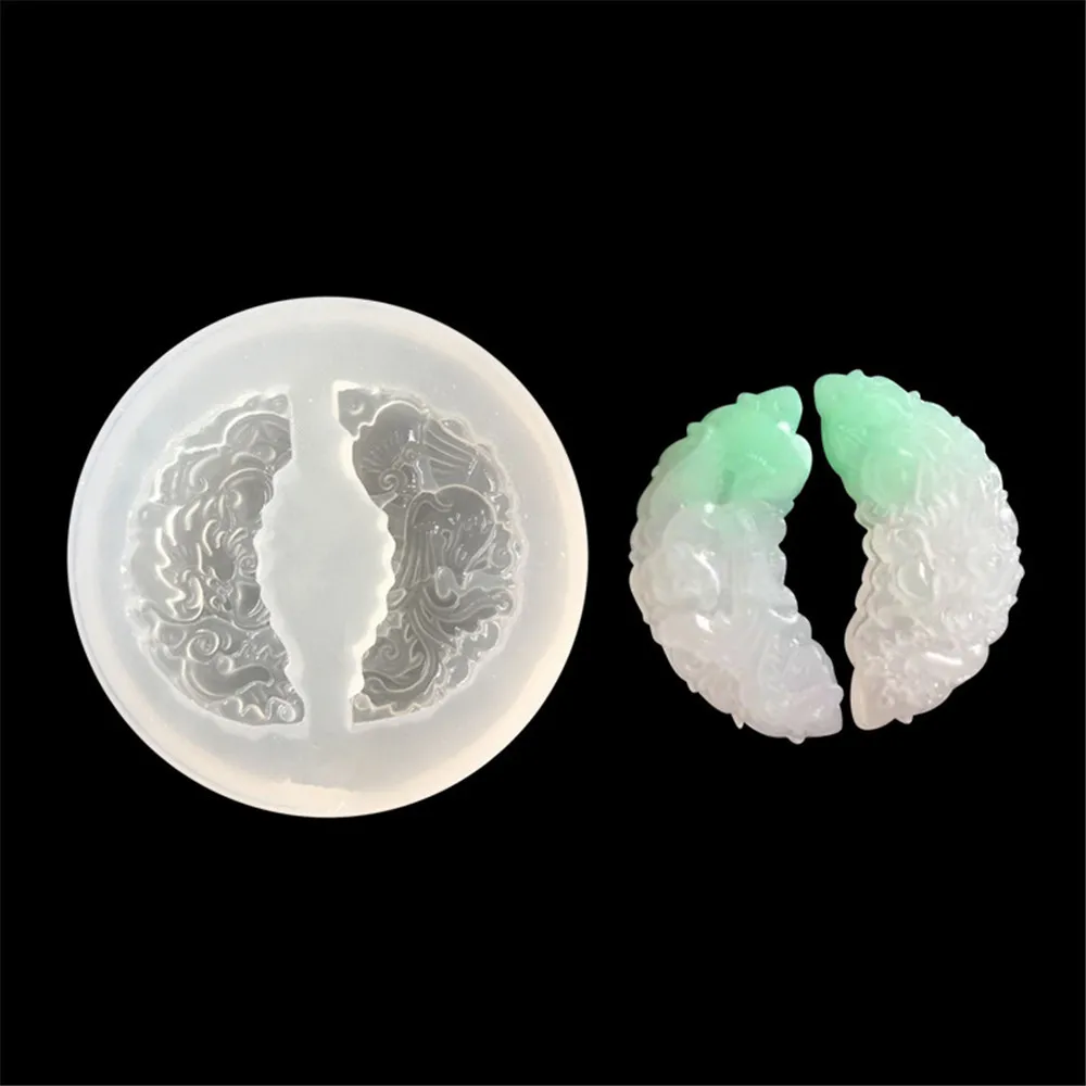 Mirror Dragon and Phoenix Jade Pendant Lotus Fan Silicone Mold DIY Craft Silicone Transparent Mold