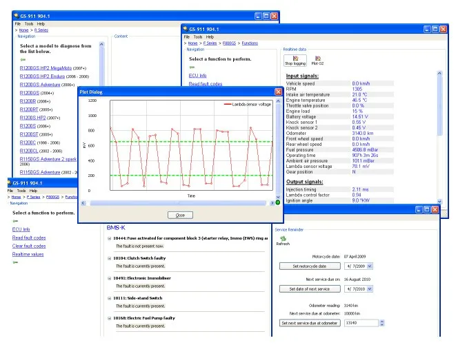 Function:1.Read Diagnostic Fault CodesThis shows the Fault codes and text descriptions of the faults stored on the Electronic Control Unit.2.Shows ECU informationSee hardware and software versions, manufacturing dates, and other manufacturer related data.3.Clears Diagnostic Fault CodesEnables you to erase fault codes once the problem has been fixed.4.Real-time Analog and Digital values for Engine control unitsview and log the real-time values (very dependent on the type of controller)5.Service FunctionalitySupport Model List:Shown here are models covered in either of the full release or the latest Beta.R-Series:HP2, HP2 Megamoto, R1200GS, R1200GS Adventure, R1200RT, R1200R, R1200ST, R1200S, R1200S HP2R1200C, R1200CLR1150GS, R1150GS Adventure, R1150RT, R1150R, R1150RS (single- and twin-spark on all models)R1100S (single and twin-spark)R850C, R850R, R850RTK-Series:K1300GT, K1300R, K1300SK1200GT, K1200R, K1200R Sport, K1200S,K1200LT, K1200GT (non-CAN), K1200RSF-Series:F800S, F800ST, F800GS, F800RF650GS (800cc 2 cylinder)F650CS, F650GS, F650GS Dakar (single- and twin-spark on all models)G-Series:G650Xchallenge, G650Xcountry, G650XmotoG650GSG450XC-Series:C1, C1-200S-Series:S1000RRCompatible System:This depends on the bike model, but in general we cover the following:1.Engine controller (BMS-K, BMS-KP, BMS-C, BMS-CII, MA2.4, KMS-K16)2.ABS (ABS-II, ABS-N, Integral-ABS, Integral-ABS-CAN, Integral-ABS2-CAN, ABS8, ABS8MOC)3.Central Vehicle Electronics (ZFE-Basic (low, mid, high), ZFE-Low, ZFE-High(full, no-ESA, ESA-only))4.Instrument cluster (Kombi-H, Kombi-L, Kombi-7x, Kombi-2D)5.DWA (Anti-Theft Alarm system)6.RDC (Tyre Pressure Control)FAQ:Q: GS-911 you offer is USB only version or Blutooth?A: GS-911 is only USB, no bluetooth.