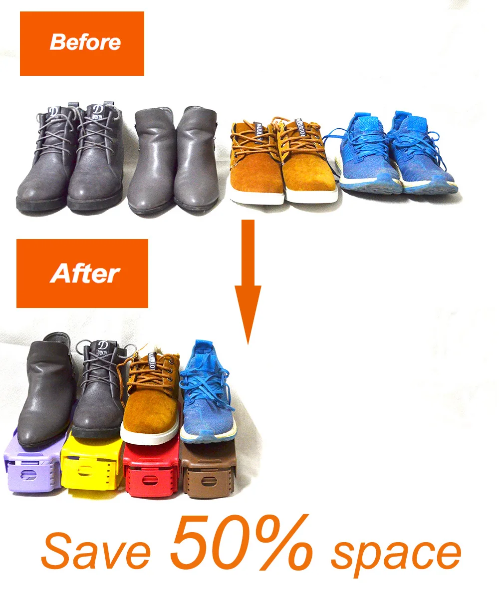 Однотонная регулируемая полка для обуви, двойная полка для обуви, креативная Пластиковая полка для обуви, органайзер, компактное хранение, Регулируемое Прочное хранение