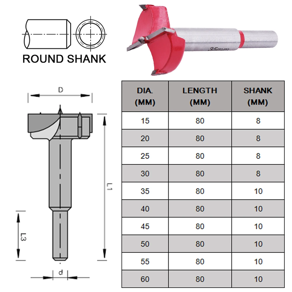 Наконечник из карбида вольфрама специально разработан для очистки отверстий в конце зерна и тонкого запаса, отлично подходит для расточных скрытых петель и дверных замков.