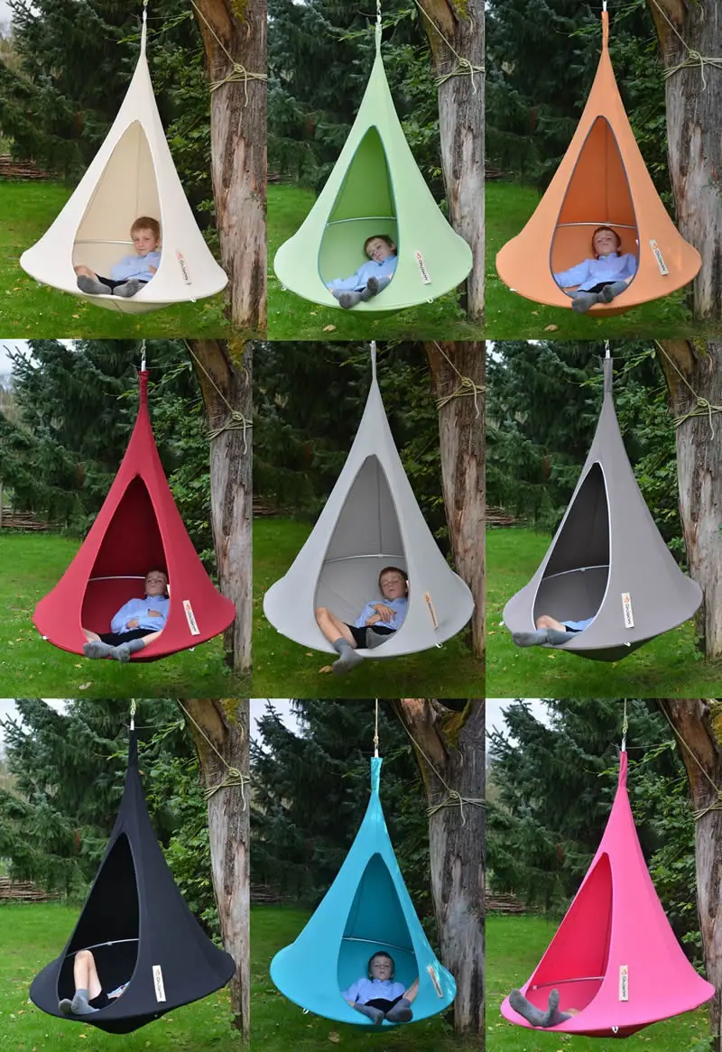 1. Разворачивайте крышку качающейся ткани и Повесьте ее на дерево или в любом месте, где вы хотите повесить ее с помощью соединительных ремней и крючков.