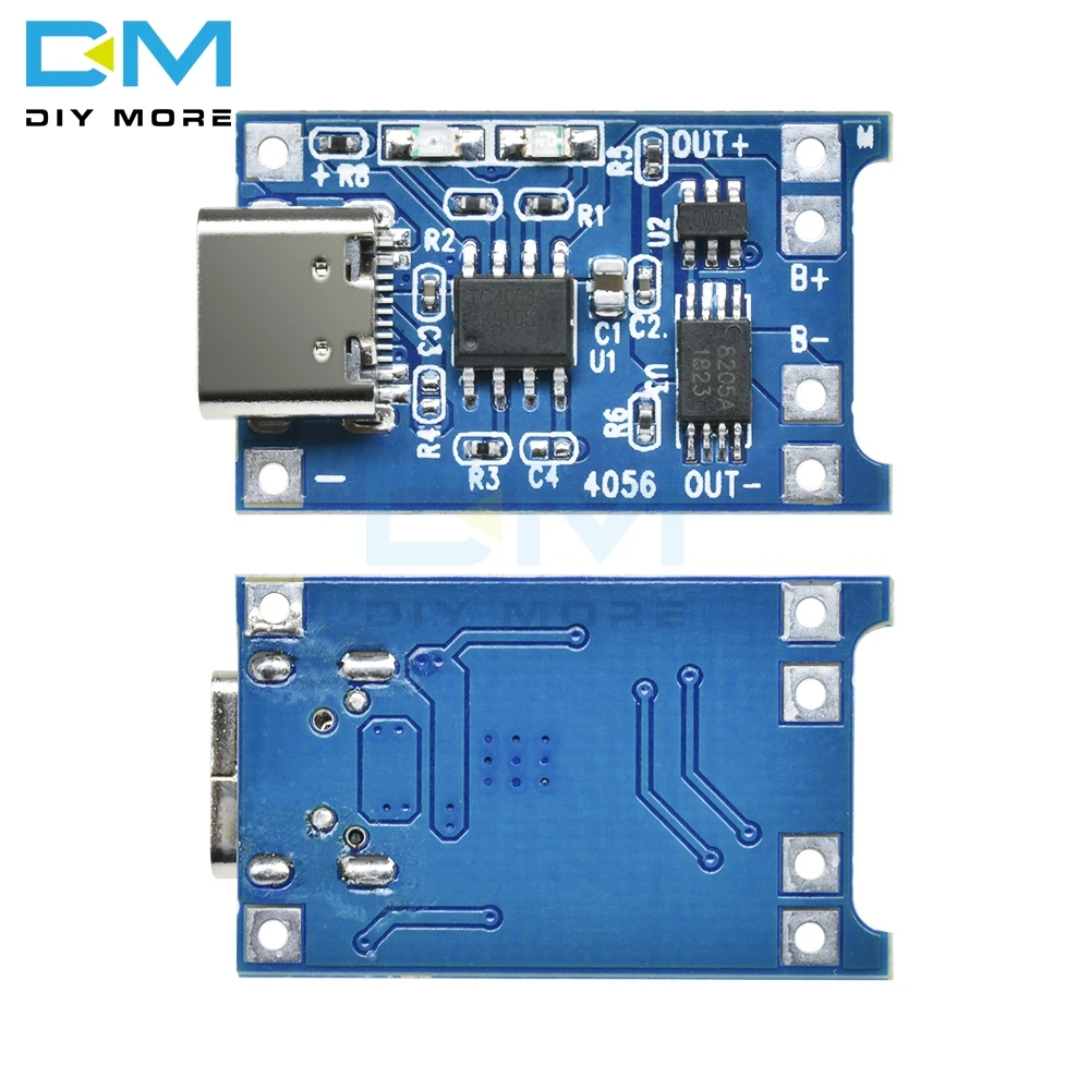 Другие особенности TP4056 включают в себя датчик температуры батареи, блокировку низкого напряжения, автоматическую перезарядку, светодиодные контакты состояния для зарядки и завершения.