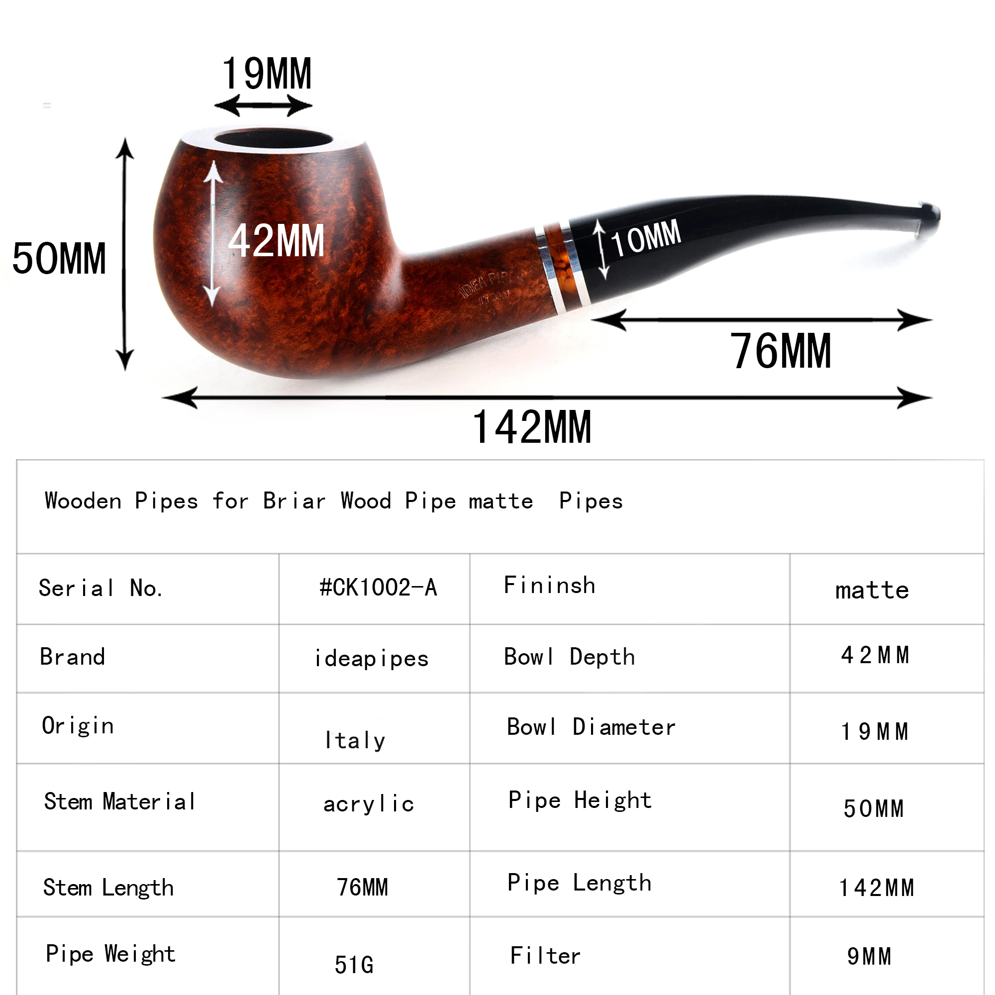 Ideapipes-очень известный производитель труб в Китае. С 2008 года компания импортирует большое количество бриарной древесины из Италии, чтобы начать производство труб. После более чем десяти лет исследований и обучения, опираясь на передовую производственную промышленность Китая. Наше производство бриарных труб измеряется с точки зрения качества и количества и достигло международного передового уровня. В то же время цена ex-factory ниже, чем в среднем по всему миру. На этот раз у нас есть три линии наших поставок. Линия А. Количество бриарных труб. Линия b. Трубы ручной работы. Линия c. Эбеновые трубы. Мы можем производить более чем 50000 шиповник трубы ежемесячно и может производить более 200000 черные трубы. Опишите размеры товара, включая различные размеры.