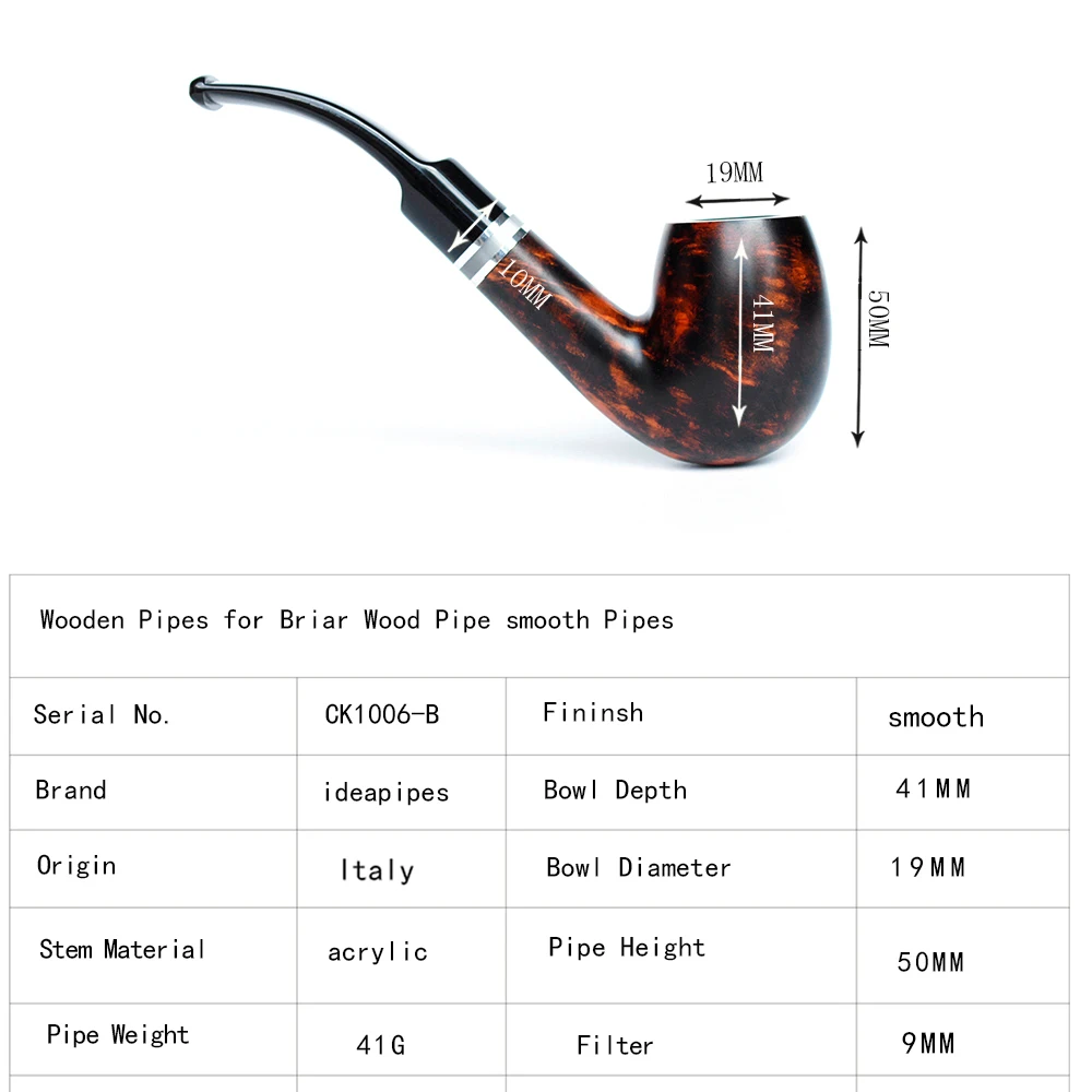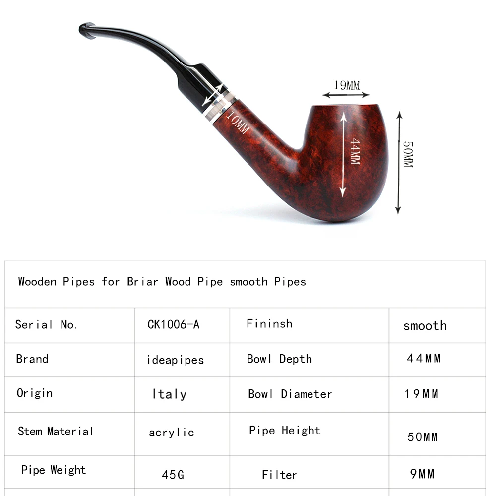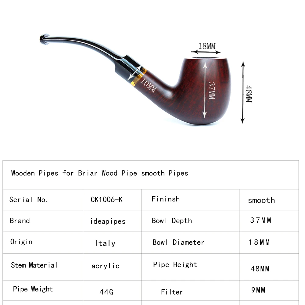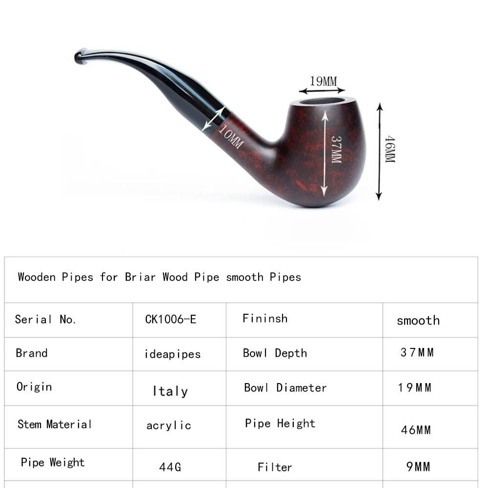 Ideapipes-очень известный производитель труб в Китае. С 2008 года компания импортирует большое количество бриарной древесины из Италии, чтобы начать производство труб. После более чем десяти лет исследований и обучения, опираясь на передовую производственную промышленность Китая. Наше производство бриарных труб измеряется с точки зрения качества и количества и достигло международного передового уровня. В то же время цена ex-factory ниже, чем в среднем по всему миру. На этот раз у нас есть три линии наших поставок. Линия А. Количество бриарных труб. Линия b. Трубы ручной работы. Линия c. Эбеновые трубы. Мы можем производить более чем 50000 шиповник трубы ежемесячно и может производить более 200000 черные трубы. Опишите размеры товара, включая различные размеры.