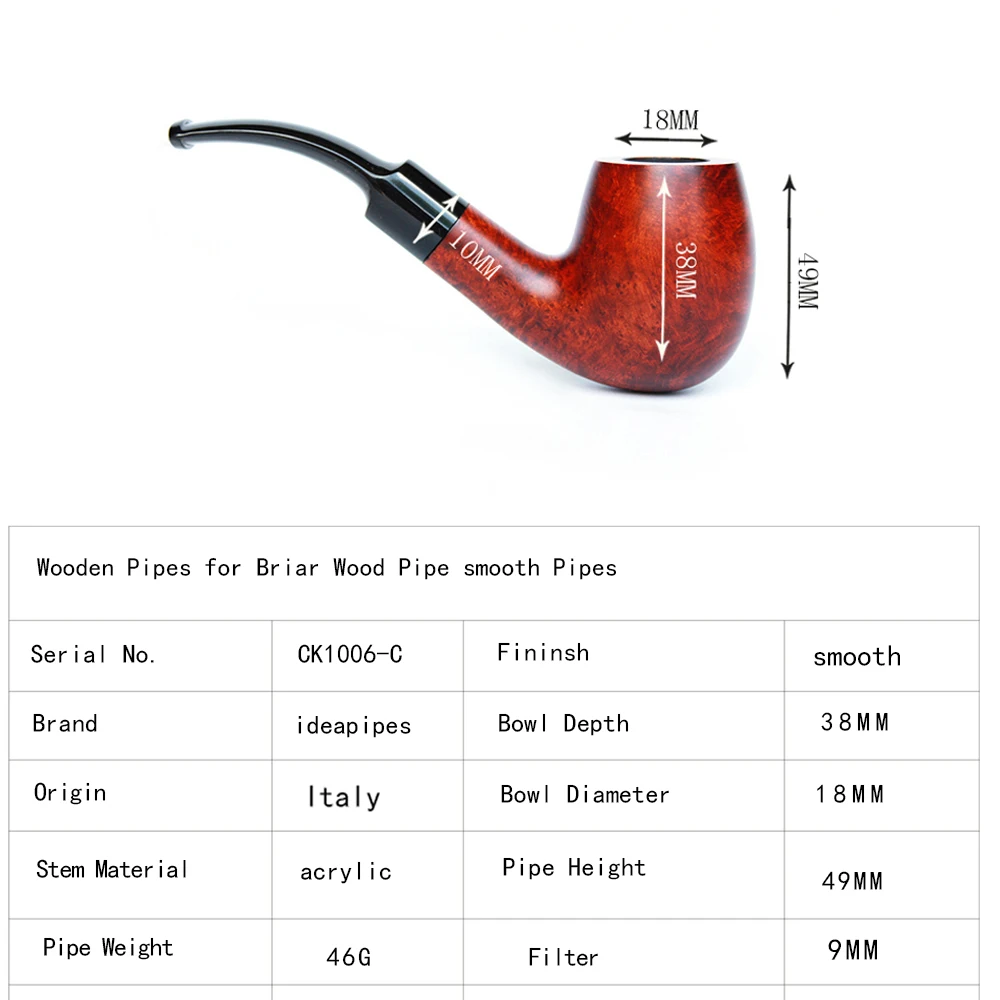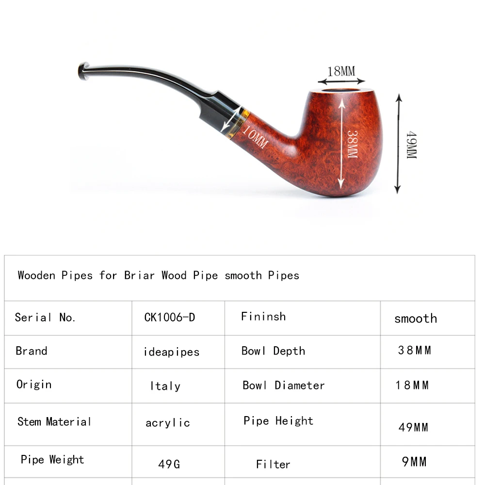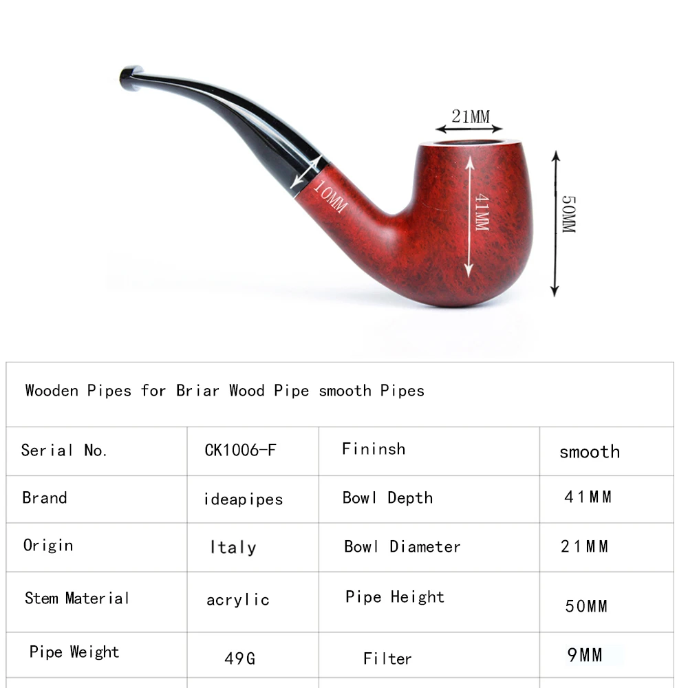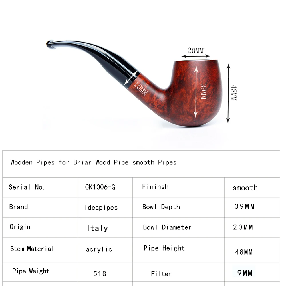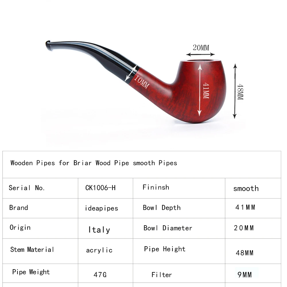Ideapipes-очень известный производитель труб в Китае. С 2008 года компания импортирует большое количество бриарной древесины из Италии, чтобы начать производство труб. После более чем десяти лет исследований и обучения, опираясь на передовую производственную промышленность Китая. Наше производство бриарных труб измеряется с точки зрения качества и количества и достигло международного передового уровня. В то же время цена ex-factory ниже, чем в среднем по всему миру. На этот раз у нас есть три линии наших поставок. Линия А. Количество бриарных труб. Линия b. Трубы ручной работы. Линия c. Эбеновые трубы. Мы можем производить более чем 50000 шиповник трубы ежемесячно и может производить более 200000 черные трубы. Опишите размеры товара, включая различные размеры.