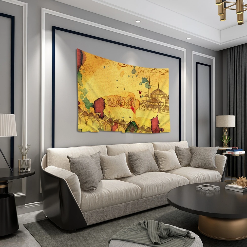Мусульманский Рамадан фестиваль гобелен семейная роспись Мандала настенная спальня путешествия Кемпинг Psychedelic скатерть