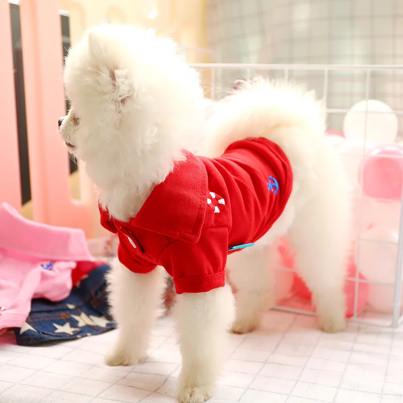 Симпатичная хлопковая летняя красная рубашка для собаки желтая синяя розовая маленькая животная удобная модная одежда для питомца с шеей для плюшевый Пудель Мопса