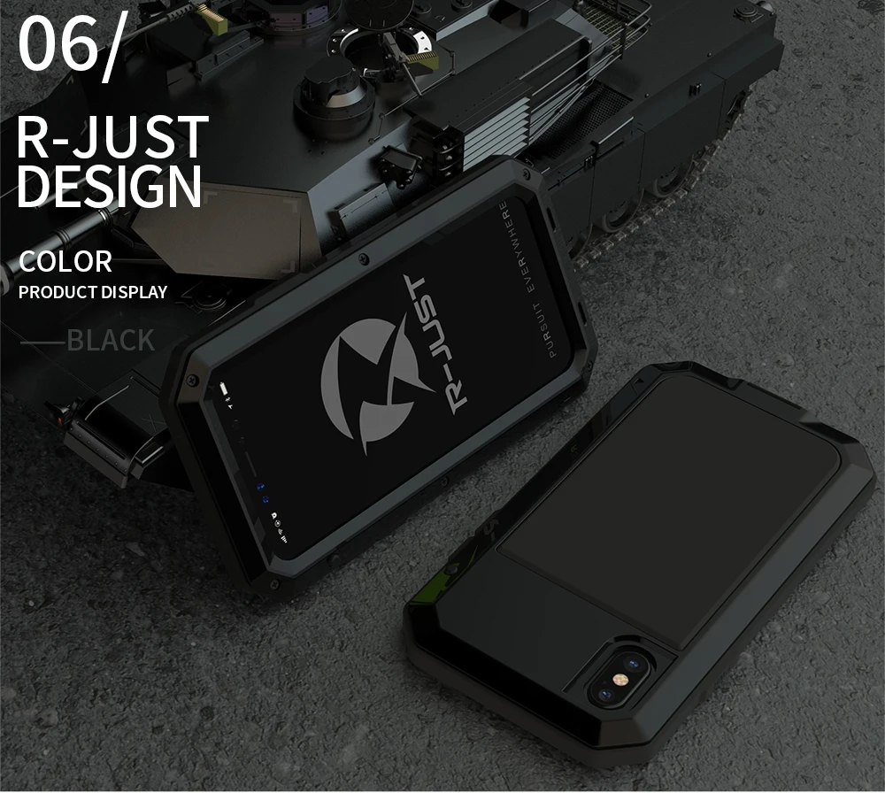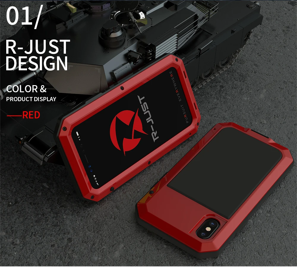 Прочная военная защита всего тела. Двухярусная конструкция защищает телефон с двойным уровнем защиты 360 градусов (защита от царапин, капель, амортизирующий, Небьющийся). Изготовлен из высококачественного материала, прочного и безопасного, что обеспечивает превосходную защиту телефона. 【 Защита от падения и ударов 】чехол для телефона, изготовленный из мягкого ТПУ премиум-класса и металлических материалов, сверхпрочный, ударопрочный, при падении; Отлично подходит для того, чтобы не повредить сотовый телефон, если вам нужен сверхпрочный чехол для защиты вашего дорогого телефона, это лучший вариант. [Уникальный герметик] песок и пыль не входят, не беспокойтесь о том, чтобы играть на морском пляже. Устойчив к погодным условиям, может легко защитить ваш мобильный телефон от дождя или внезапного повреждения воды, он может противостоять водо-и дождевой нагрузке, но не погружаться в воду. [Высокий дизайн] дизайн идеально подходит для Apple iPhone, все кнопки и элементы управления, такие как камеры и колонки, кнопка питания, порт зарядки и Кнопки громкости, отлично работают, как будто нет чехла. [Прочная форма] модный дизайн, выглядит очень круто, Чехол для мужчин, солдат, воинов, любителей активного отдыха, гонщика, водителя грузовика и всех людей, которые хотят хорошо защитить телефон. 1) бренд: R-JUST 2) Состояние продукции: 100% R-JUST оригинал и Фирменная Новинка 3) Материал: алюминиевый сплав, силиконовый чехол, закаленное стекло 4) цвет изделия: Камуфляжный, зеленый, черный, красный, золотой, белый, серебристый, желтый 5) Вес изделия: 170-250 граммов 6) Беспроводная зарядка: Поддержка 7) характеристики изделия: сверхпрочный металлический алюминиевый чехол с полной защитой 360 градусов