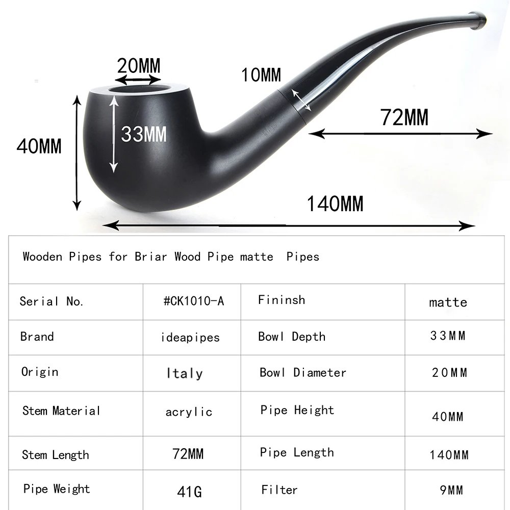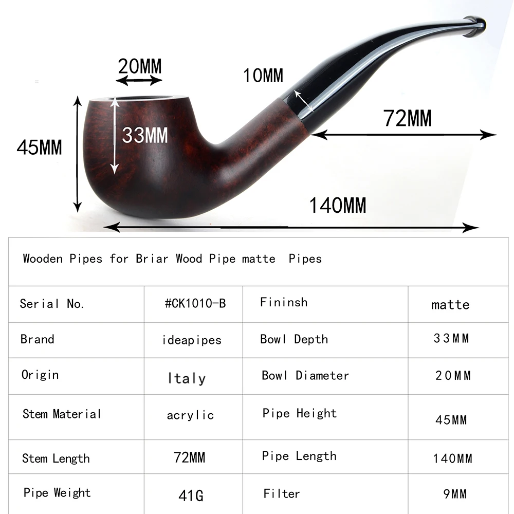 Ideapipes-очень известный производитель труб в Китае. С 2008 года компания импортирует большое количество бриарной древесины из Италии, чтобы начать производство труб. После более чем десяти лет исследований и обучения, опираясь на передовую производственную промышленность Китая. Наше производство бриарных труб измеряется с точки зрения качества и количества и достигло международного передового уровня. В то же время цена ex-factory ниже, чем в среднем по всему миру. На этот раз у нас есть три линии наших поставок. Линия А. Количество бриарных труб. Линия b. Трубы ручной работы. Линия c. Эбеновые трубы. Мы можем производить более чем 50000 шиповник трубы ежемесячно и может производить более 200000 черные трубы. Опишите размеры товара, включая различные размеры.