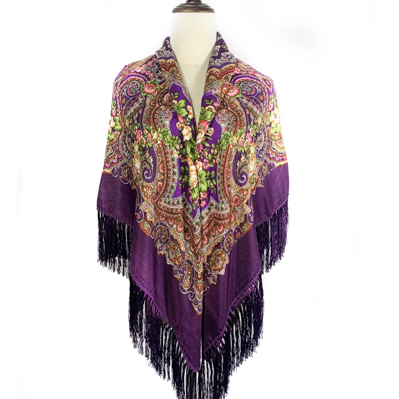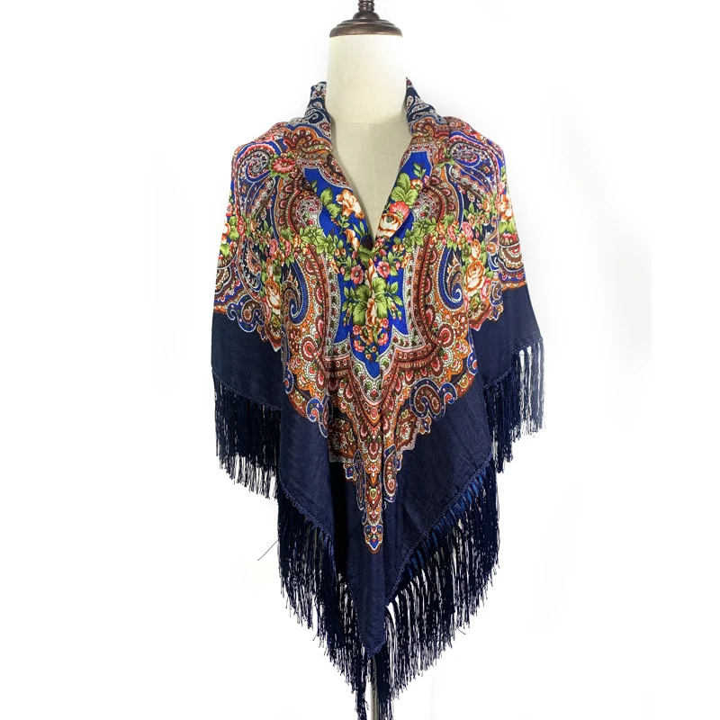135*135cm Women Russian Shawl Square Blanket Scarf Ethnic Style Floral Printed Fringed Scarves Babushka Shawls Head Wraps