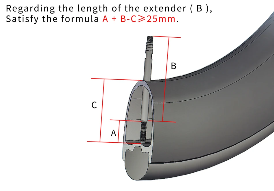 Относительно длины расширителя (B ), удовлетворяйте формулу A + B-C ≥ 25 мм.