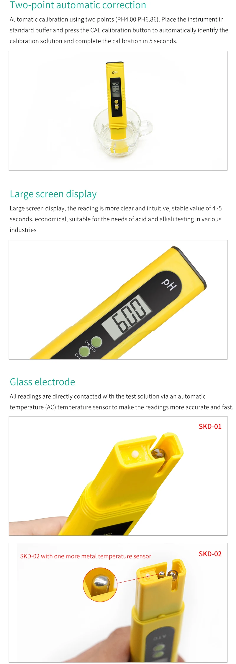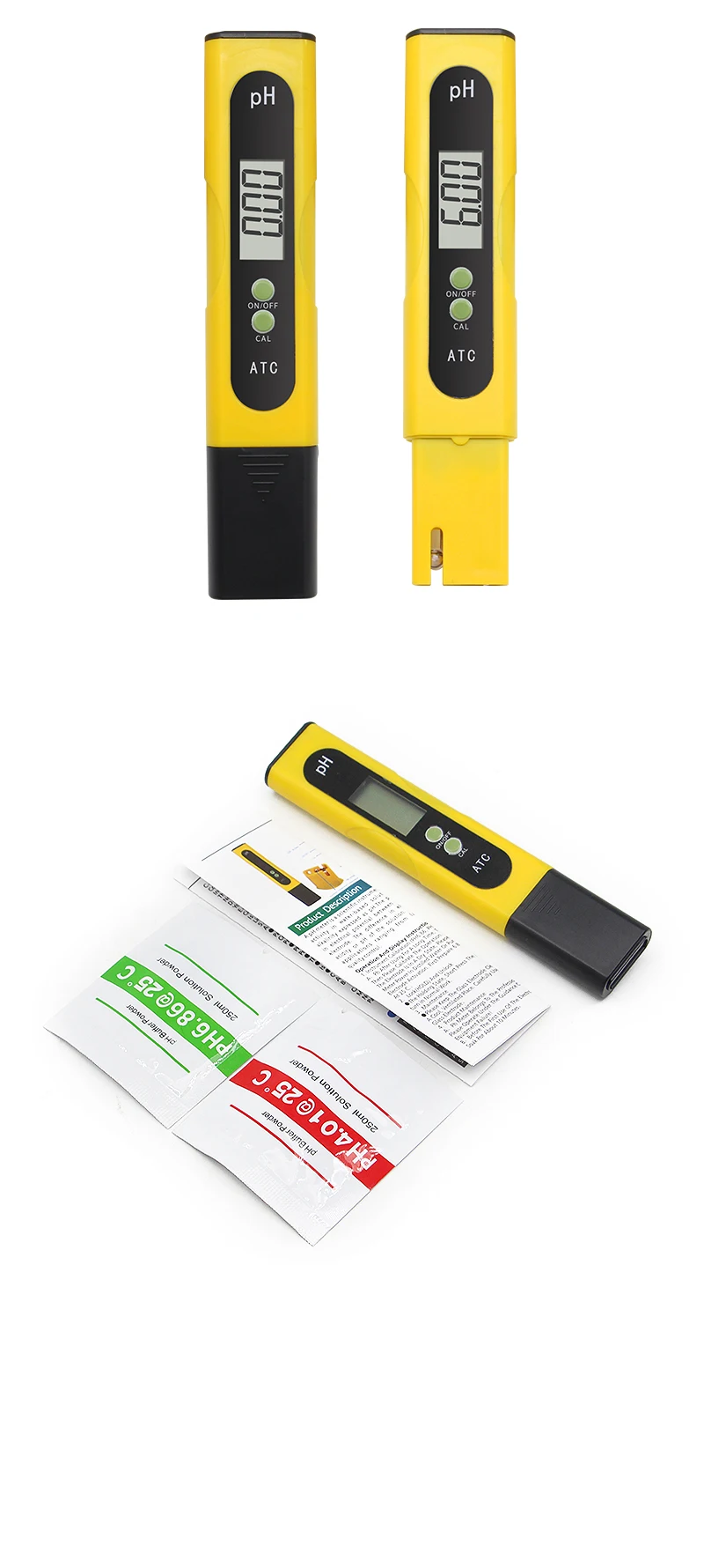 Авто Калибровка:Особенности встроенной калибровки с 2 буферными порошками (в комплекте). Просто нажмите кнопку, чтобы закончить калибровку. Этот измеритель pH откалиброван фабрикой. Используйте rs можно использовать напрямую.