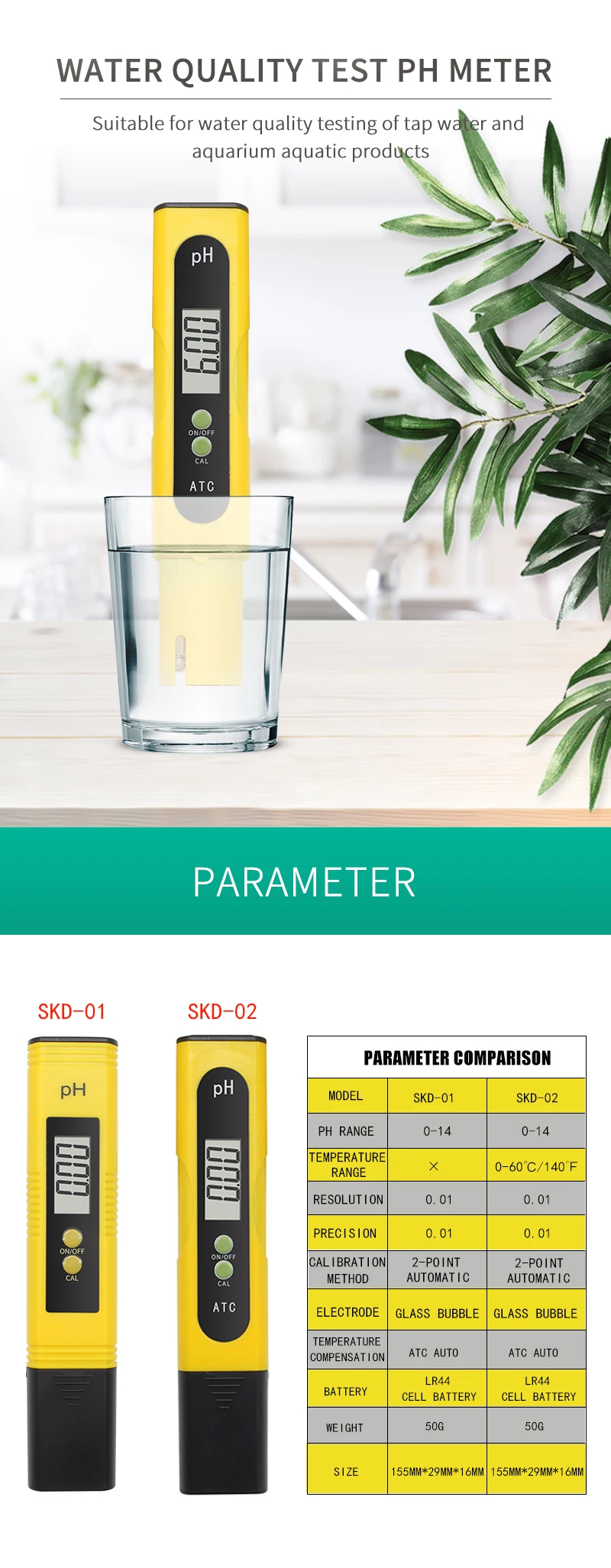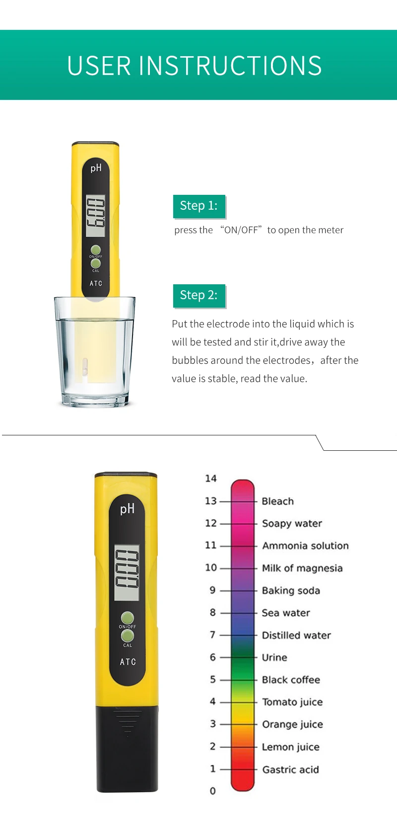 Широкий Применение:Идеальный инструмент для любого аквариума, рыболовной промышленности, бассейнов, спа, школьных лабораторий, продуктов питания и напитков, питьевой воды и т. Д.