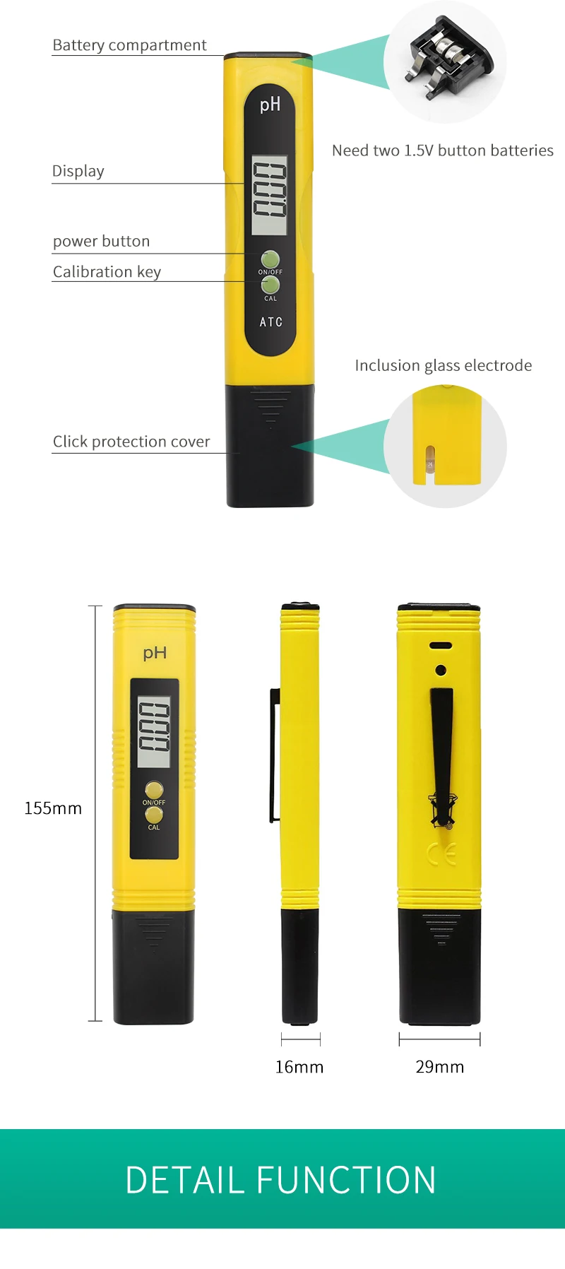 Компактный Портативный дизайн:Карманный измеритель pH, который также легкий и компактный. Полная Скрытая посадка в сумке или кармане для удобной, повседневной переноски.
