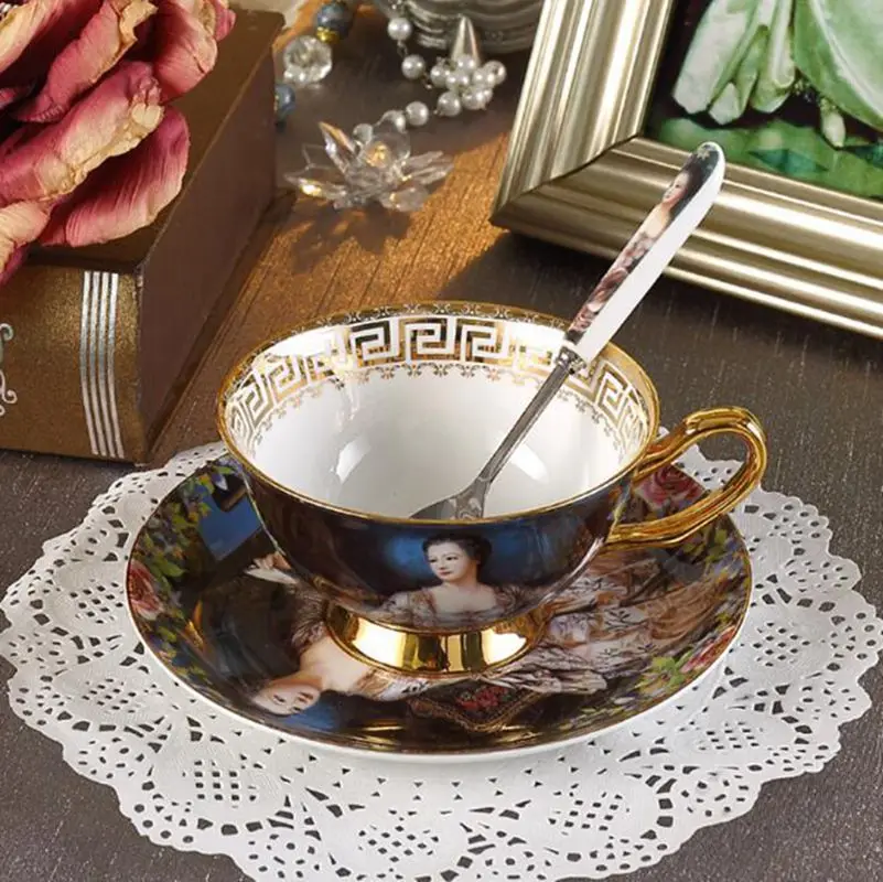 Керамические чайные чашки из Королевского костяного фарфора с ложкой, 180 мл