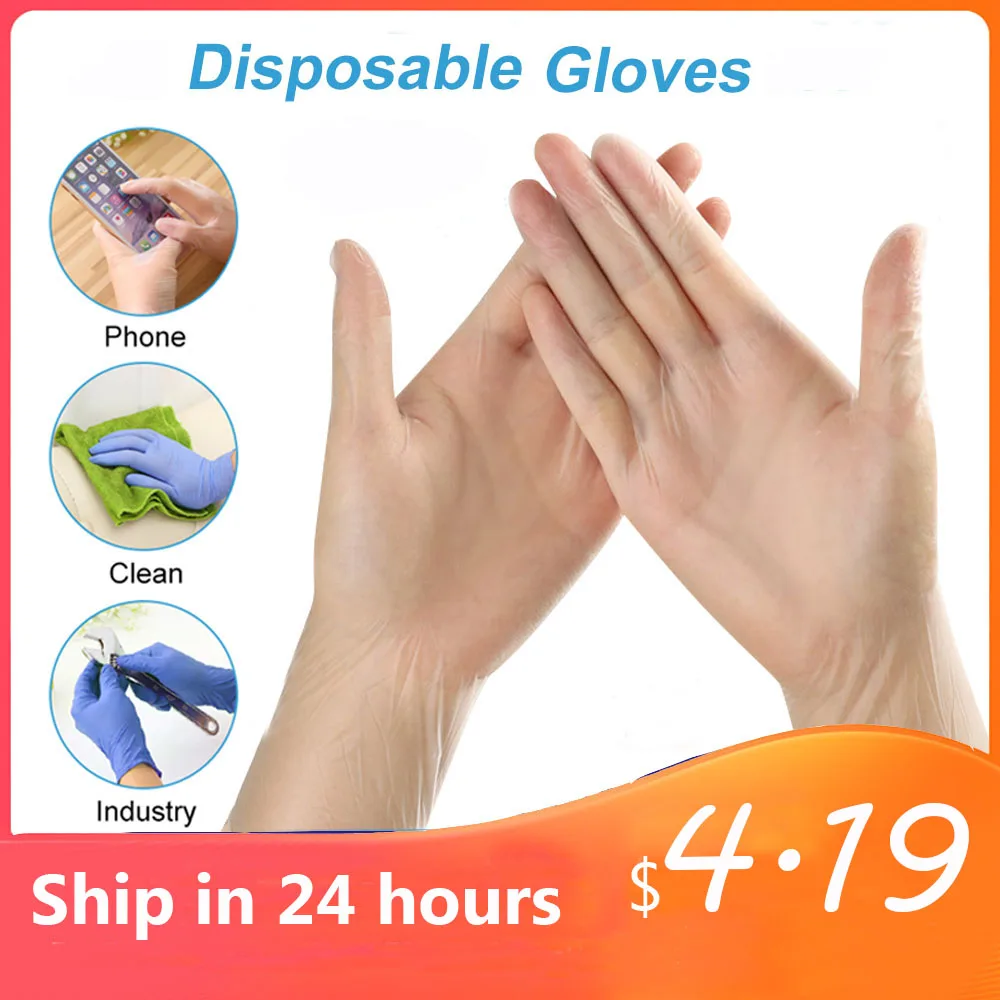 100 шт прозрачные одноразовые ПВХ перчатки для мытья посуды/кухни/латекса/резины/садовые перчатки универсальные для левой и правой руки Характеристики: маслостойкие, противообрастающие, без аллергии, удобные для ношения: пищевая промышленность, салоны красоты, домашняя жизнь, научные эксперименты и т. Д. Пищевое сырье, доступное для пищевых продуктов, безопасное и гигиеничное, предотвращающее рост бактерий