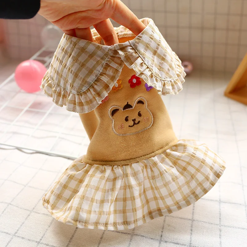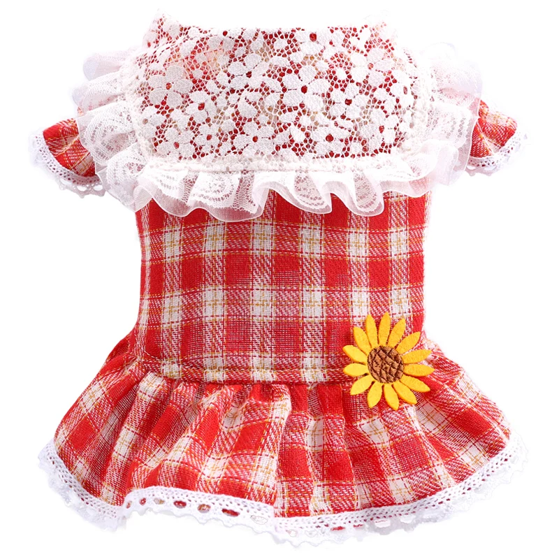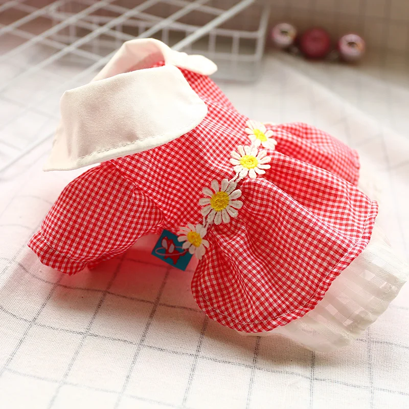 Новинка 2020, летнее платье для собаки, клетчатый воротник с цветком, юбка для питомца, одежда для маленьких собак, различные стили