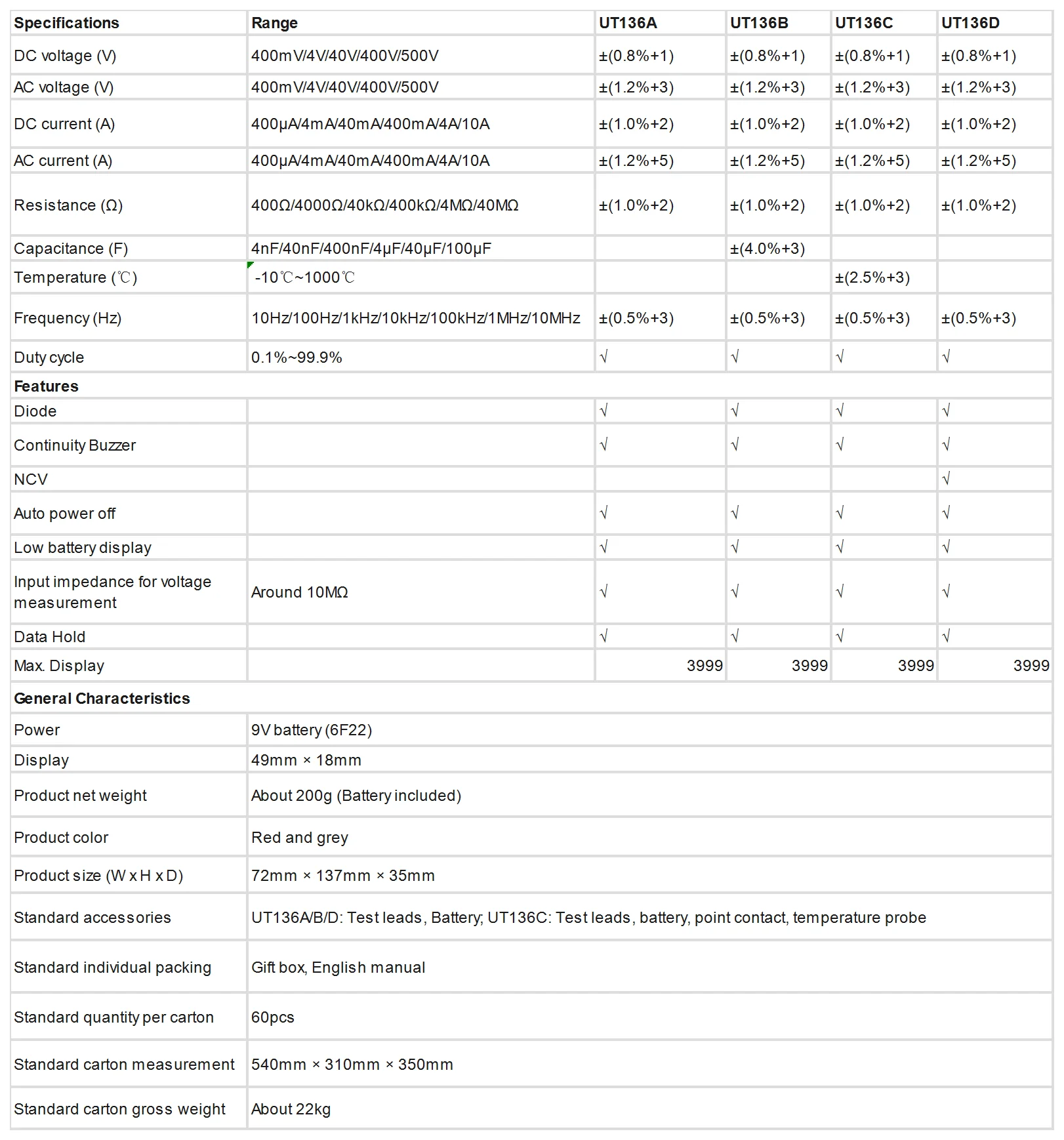 UT136 Серия цифровых мультиметров a re общий тип авто дальность метров. Серия имеет небольшой размер, удобна для всех условий оценки. Его автоматическая функция диапазона 4000 единиц позволяет быстро и эффективно измерять. Серия UT136-отличные инструменты для электриков и дийеров.