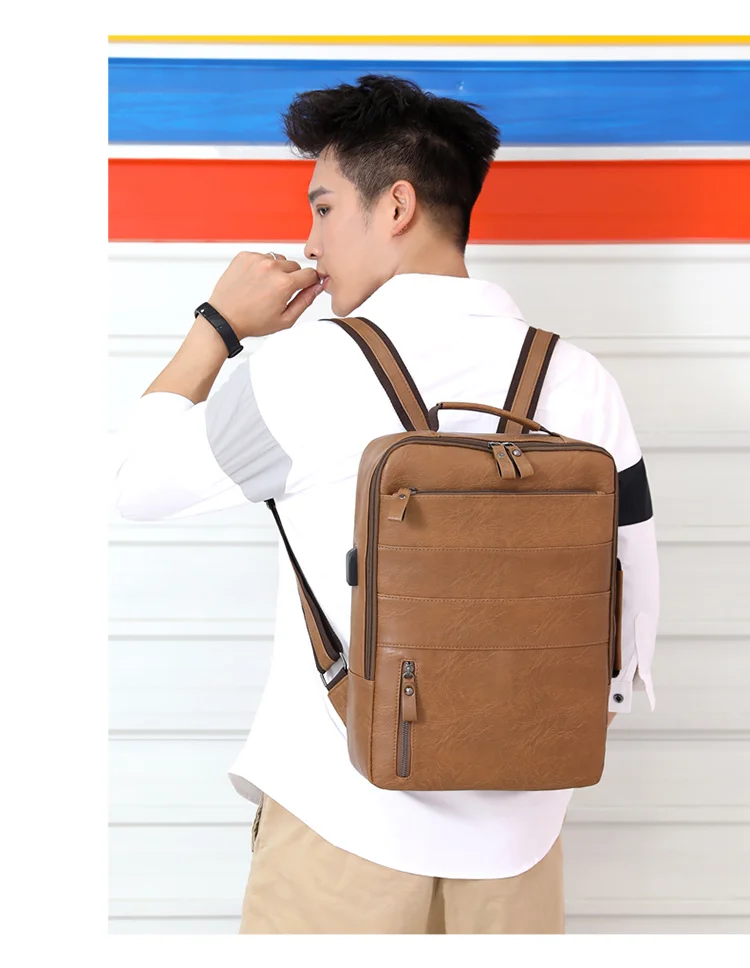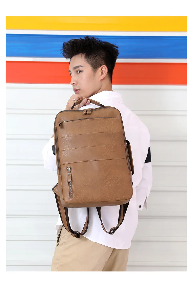 Мужской брендовый рюкзак из искусственной кожи, водонепроницаемая дорожная сумка, Повседневная кожаная сумка для книг для мужчин