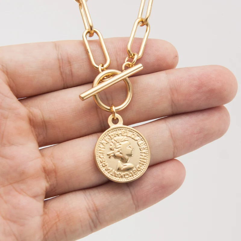 Золотистое Длинное колье-чокер из нержавеющей стали, ожерелье с медалью Марии для монет, женская бижутерия в богемном стиле