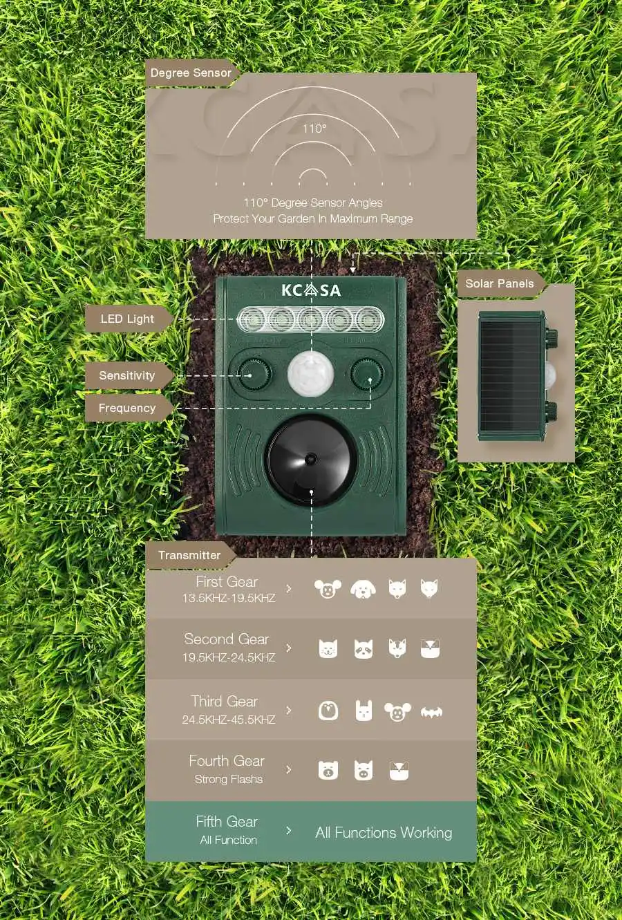 KC-JK369 ультразвуковой PIR датчик солнечной отпугиватель птиц