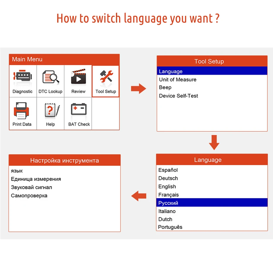 1. Работает со всеми протокол OBD II: KW2000, ISO9141, J1850VPW, J1850PWM и CAN. 2. Работает с английским, французским, немецким, русским, испанским, итальянским, финским, голландским и португальский 3. Полный режим обслуживания OBD-Считывание и очистка кодов, графический поток данных, выключение, контрольный светильник двигателя (MIL), внешний вид DTC, тест O2, тест на сенсорную систему EVAP, мониторинг батареи, печать данных, I/M готовности 4. Поддерживает контроль контроля заряда батареи, отображает информацию о напряжении в режиме реального времени, защищает аккумулятор автомобиля от перенапряжения 5. Продвинутый UI Дисплей/2,8 ''TFT ЖК-дисплей экран, 5ft длинный кабель, ручной дизайн, Специальный защитный чехол и прочная нейлоновая оплетка продлевает сумка для хранения, матовые силиконовые ключи, Heavy duty и плотного телосложения. Легко читать, держать, использовать, переносить и организовывать после использования. 6. Расширенная версия от основных считывателей кодов-светильник с предупреждающим индикатором MIL, 3 цвета, с динамиком, который может «Звуковой сигнал» в течение 5 секунд, чтобы предостережать вас о рисках. Более прочный, чем в старой версии, и поставляется с лучшей совместимостью. 7. Бесплатное онлайн-обновление на весь срок службы