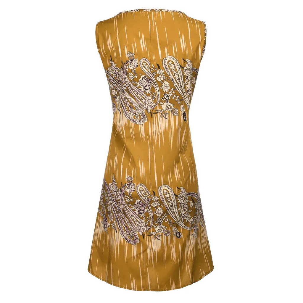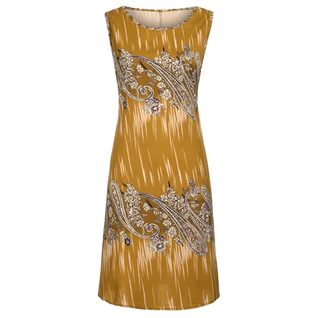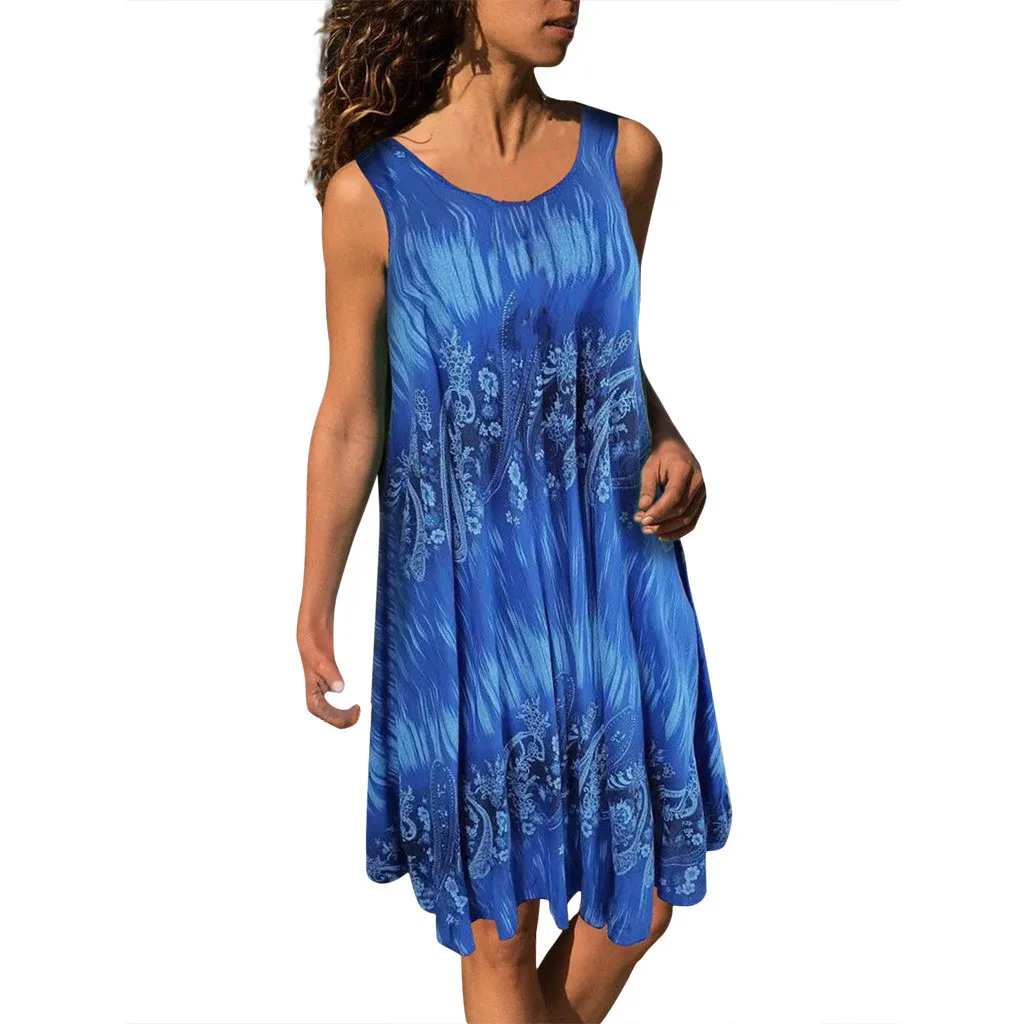 Модный женский жилет без рукавов размера плюс с круглым вырезом и принтом легкое мини-платье