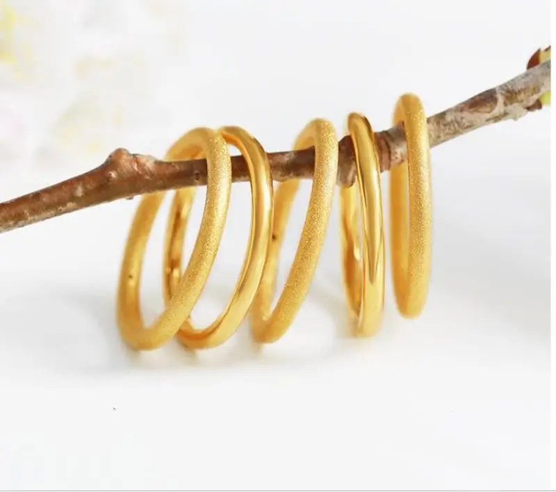 Металл Настоящее Желтое золото 24 к Вес: 0,9-1,3 г Размер кольца: США 4,5-10 (пожалуйста, выберите нужный размер) Ширина: около 2 мм Отличительная черта: Чистое золото Упаковка: 1 кольцо в подарочной коробке Ремесло: классическое ремесло. ТВЕРДОЕ ЗОЛОТО 3D. Специальное украшение для особых людей. Отчет об испытаниях: мы сначала тестируем их, когда перечисляем их на AliExpress. Все они квалифицированы. Вы можете повторно протестировать его после получения посылки.