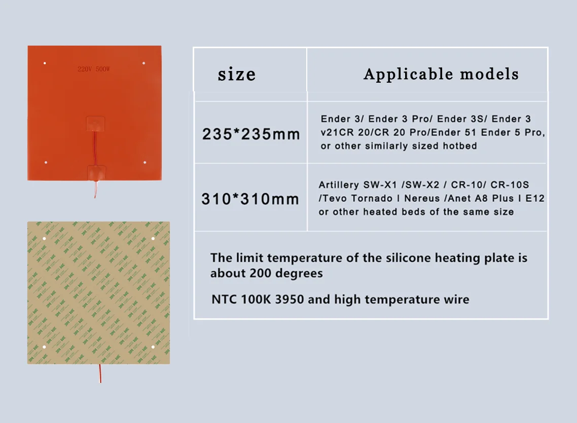 1 X 3D-принтер Силиконовая нагревательная кровать с клеем 3M и термистором.