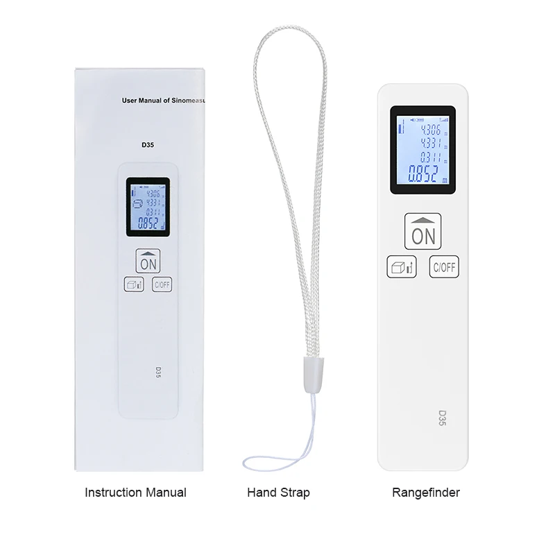 Различные настройки: 3 единицы измерения: m/in/ft, индикатор buzzer, ручное выключение питания/автоматическое выключение 45s без работы и функция автоматического отключения лазера 15s. Супер Мини карманный размер для портативного использования.