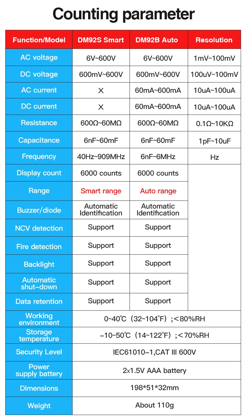 DC Напряжение: 600 мВ/6В/60В/600V