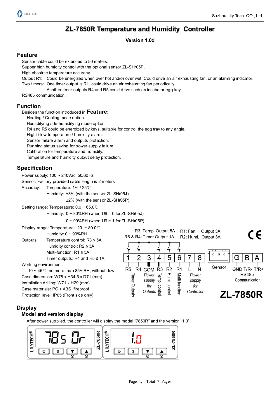 Руководство можно загрузить: Www.suzhoulily.com/pdf/ZL-7850R_en_V1.0d.pdf