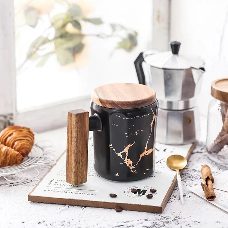 370 мл керамические мраморные кружки для кофейного чая, офисные питьевые кружки, чашки с деревянной крышкой и деревянной ручкой, подарочные столовые приборы: 370 мл