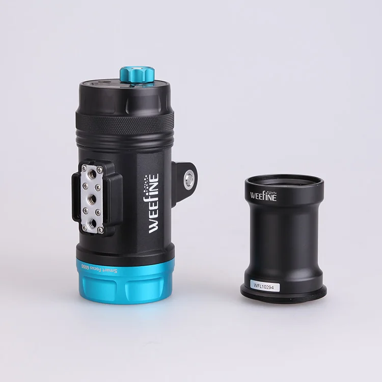 Новая и уникальная функция-светодиодный фонарик. Светильник Weefine Smart Focus 6000 может использоваться как подводный «флэш-пистолет», так как он производит 8000-lumen мигание светильник от своего COB светодиодный, синхронизация через волоконно-оптический кабель от встроенной вспышки камеры. Смарт-фокус 6000 достаточно быстрый для синхронизации со всеми камерами предварительной вспышки. В этом режиме устройство может быть настроено на то, чтобы издавать более низкую мощность «моделирующий светильник» перед «вспышкой». Светильник для моделирования позволит вам составить светильник, прежде чем сделать снимок. Смарт-фокус 6000 может заменить ручной стробоскоп в макросъемке и крупным планом.