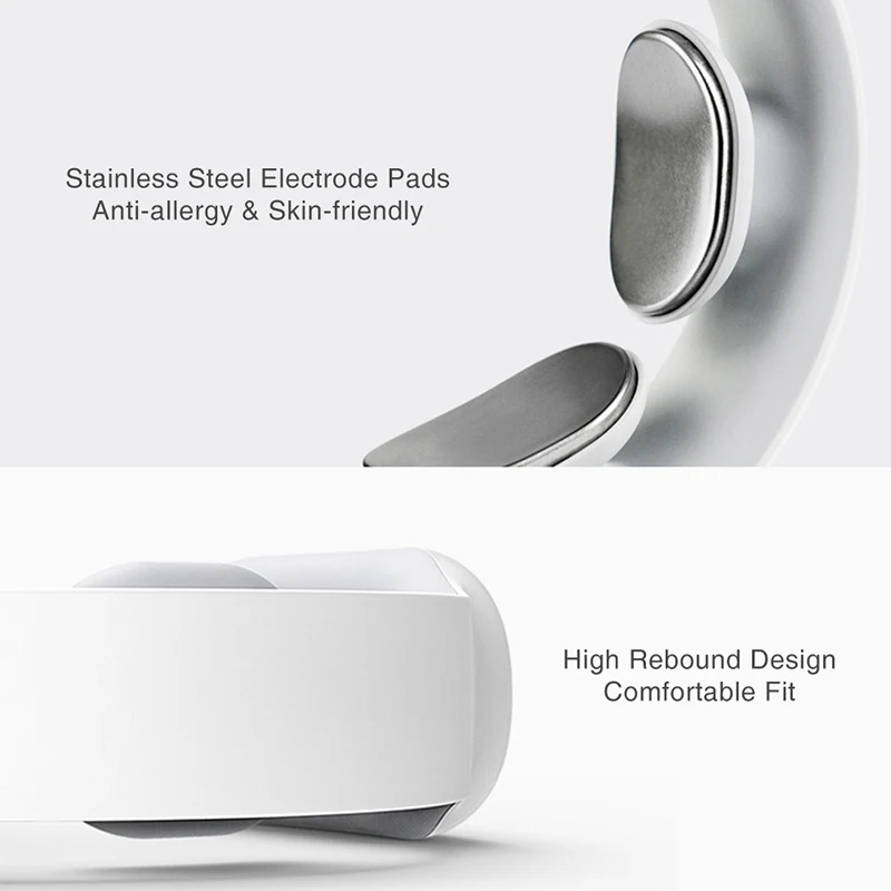 [Эргономичный комфорт при ношении]Силиконовый материал, благоприятный для кожи, обеспечивает гладкость и мягкость при прикосновении, а 304 электродных подушечек из нержавеющей стали идеально ложатся на кривую шеи с бережной заботой.