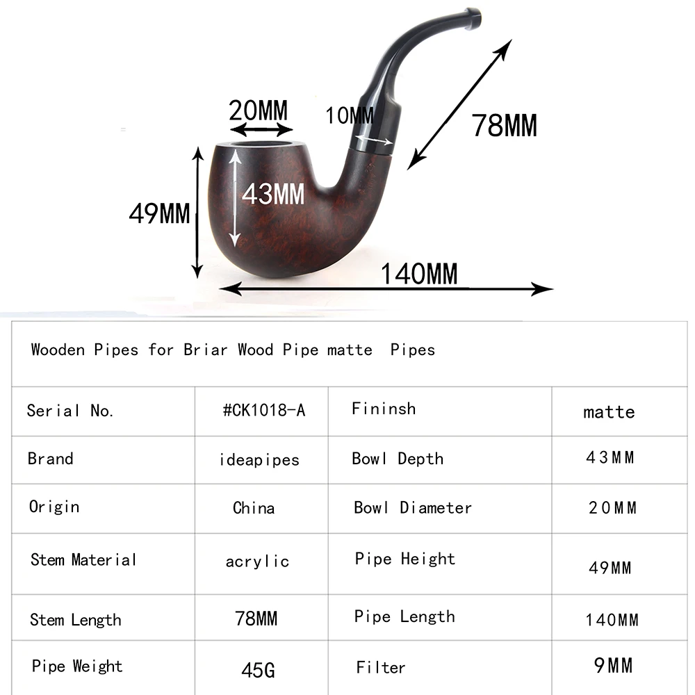 Ideapipes-очень известный производитель труб в Китае. С 2008 года компания импортирует большое количество бриарной древесины из Италии, чтобы начать производство труб. После более чем десяти лет исследований и обучения, опираясь на передовую производственную промышленность Китая. Наше производство бриарных труб измеряется с точки зрения качества и количества и достигло международного передового уровня. В то же время цена ex-factory ниже, чем в среднем по всему миру. На этот раз у нас есть три линии наших поставок. Линия А. Количество бриарных труб. Линия b. Трубы ручной работы. Линия c. Эбеновые трубы. Мы можем производить более 50 000 бриарных труб в месяц и производить более 200 000 эбеновых труб. Опишите размеры товара, включая различные размеры.