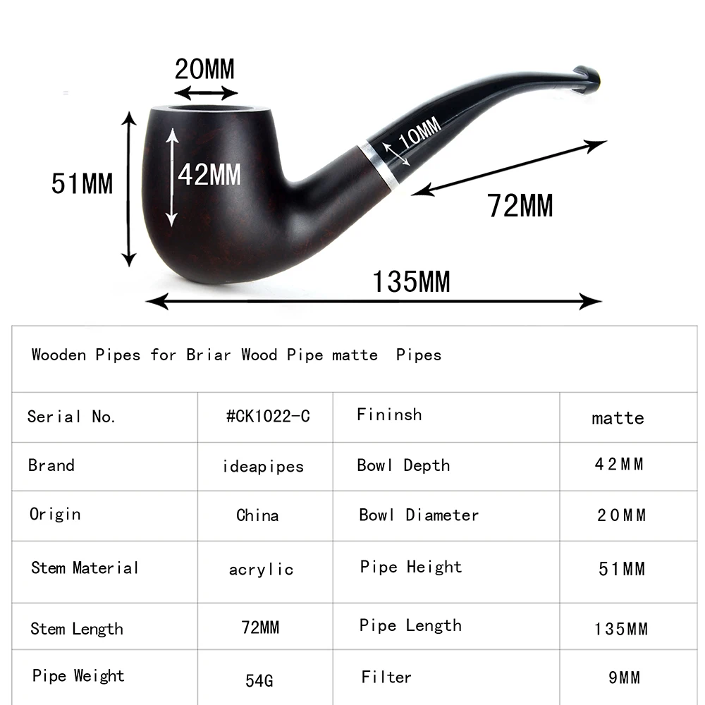 Ideapipes-очень известный производитель труб в Китае. С 2008 года компания импортирует большое количество бриарной древесины из Италии, чтобы начать производство труб. После более чем десяти лет исследований и обучения, опираясь на передовую производственную промышленность Китая. Наше производство бриарных труб измеряется с точки зрения качества и количества и достигло международного передового уровня. В то же время цена ex-factory ниже, чем в среднем по всему миру. На этот раз у нас есть три линии наших поставок. Линия А. Количество бриарных труб. Линия b. Трубы ручной работы. Линия c. Эбеновые трубы. Мы можем производить более чем 50000 шиповник трубы ежемесячно и может производить более 200000 черные трубы. Опишите размеры товара, включая различные размеры.