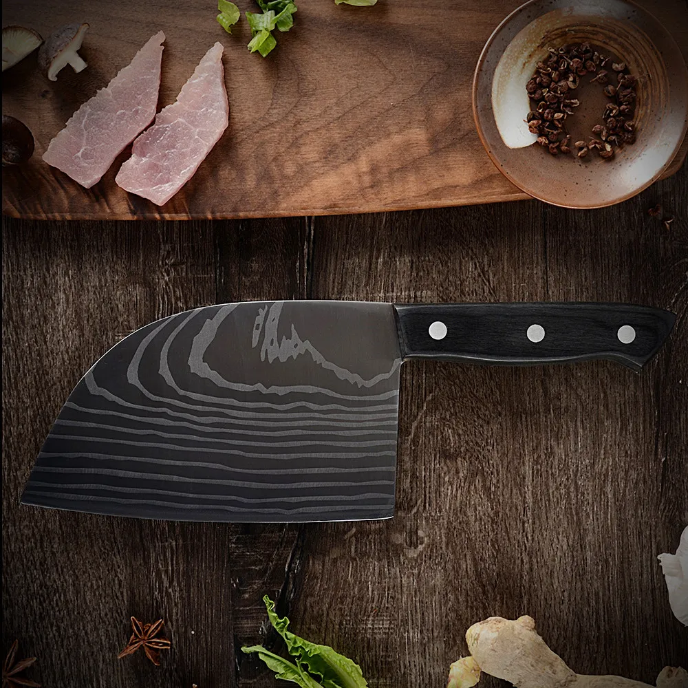 Вес ножа: около 435 г Ширина лезвия: около 100 мм Длина лезвия: около 165 мм Толщина лезвия: около 3,8 мм Стиль ручки: полная ручка Tang Материал лезвия: высокоуглеродистая Нержавеющая сталь 7cr17 ручной работы Материал ручки: полностью интегрированный Стальной хвостовик + дерево + заклепки Материал оболочки: кожа, нейлон