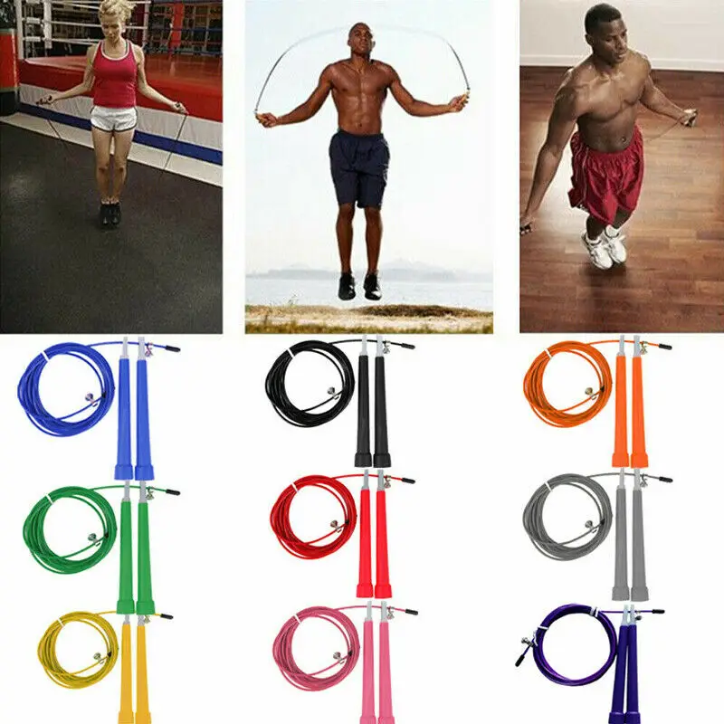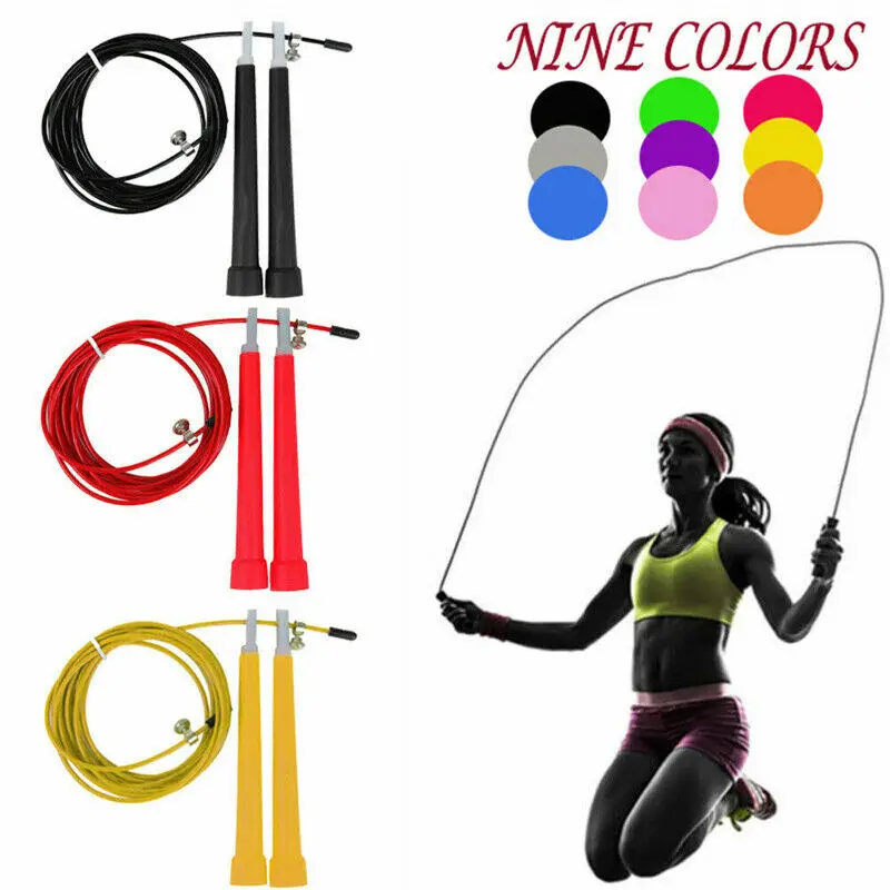 Rope skipping can promote the heat function into the better one. Makes your Cardiovascular more and more strong and healthy. Rope skipping can not only makes your muscle more and more seed But also can eliminate the fatness of your arm and your leg, Makes your body more and more beautiful. In order to make your action quickly and make your bodys gravity steadily. If you want to lose your weight,you can combine your rope skipping and decide your Suitable eating,then you will succeed in losing weight and your weight will be more and More steady. In addition,aerobics exercise can recover your body power. Color:8 Colors,choose the color you like Size:Handle length:14cm Rope length:3m Material:Steel Wire + PVCPackage included:1 pc 3M skipping rope