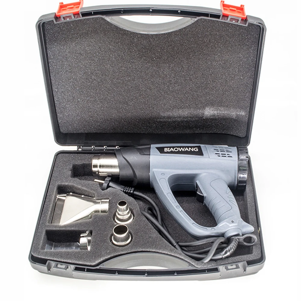 1. Изготовлен из полипропиленового материала, безопасный и прочный. 2. Подходящий размер подходит для различных тепловых пистолетов и других аппаратных инструментов. 3. Удобно носить с собой. 4. Внутри коробки есть пена, содержащая насадки и пистолет горячего воздуха. 5. Доступная цена и высокая производительность.