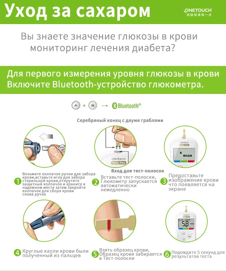 1. VerioFlex, глюкометр для измерения уровня глюкозы в совместимый Тесты полосок:
