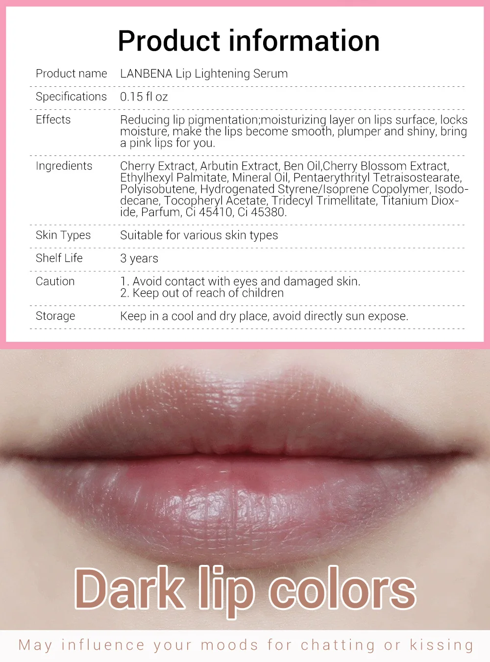 ▶Избавьтесь от темных цветов губ, которые могут повлиять на ваши настроения для общения или поцелуев
