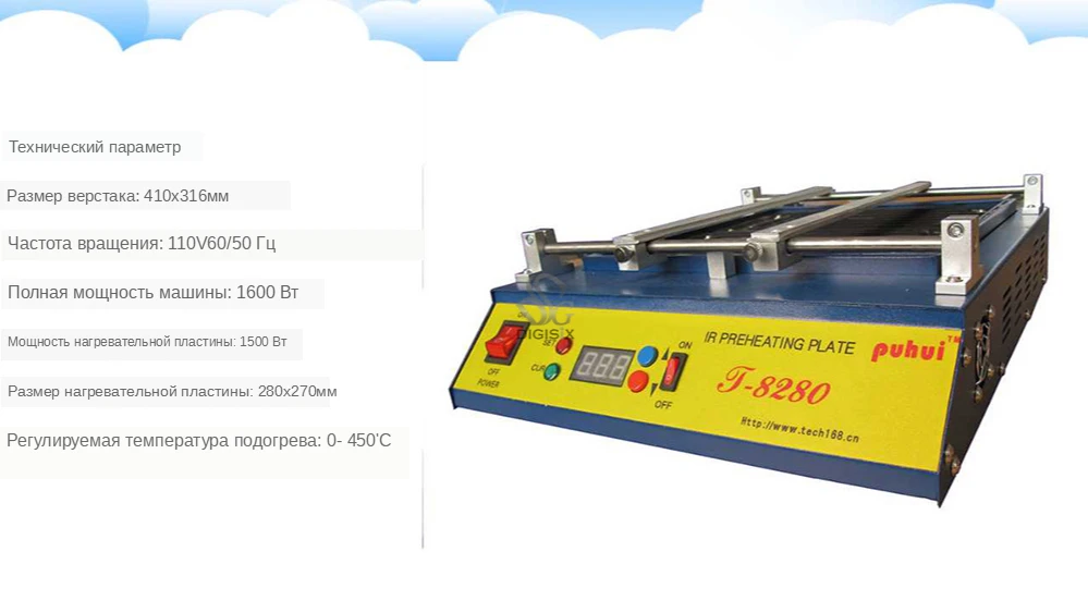 2. T-8280 может достигать тепловой платы PCB и компонента, который содержит свинец или нет, особенно для частей BGA и SMD. 3. Используйте инфракрасное тепло, легко резать, пропорции тепла, не имеют потока sirocco. Не переносите мелкие компоненты на печатную плату, гарантируйте качество сварки. 4. Эта машина имеет тепловую систему 600 Вт, широко до 280х270мм. Может использоваться вместе с ручным инфракрасным сварочным T-835. 5. Легко управлять, вы можете управлять им через легкое обучение. Технический параметр Технический параметрВерстак Размер