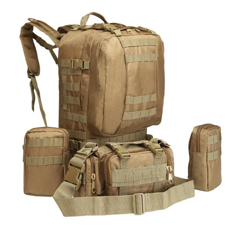 1. 50 л большой емкости, с 3 съемными Молле мешками, прикрепленными спереди и с двух сторон. 4 сумки могут быть отделены, удобны и портативны; 2. Профессиональный дизайн карман для сумки для воды, может разместить различные размеры сумки для воды; 3. Полностью регулируемый ремень и пояс. 4. Широкий и толстый пояс, удобный для переноски. 5. Изготовлен из нейлона 600D, износостойкий, прочный. Примечание: Из-за различных измерений допускается погрешность в 1-3 см. Из-за разницы в цвете на дисплее возможна небольшая разница. Это нормально.