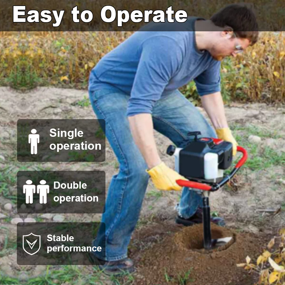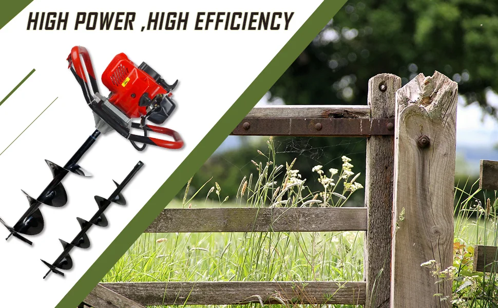 Шнек идеально подходит для быстрого сверления в землю с целью установки в землю: столбы ограждения, столбы, деревья, кустарники и т. Д. Комплектуется 52CC 2. Бензиновый двигатель 5 л.с., шнеком можно легко управлять одним или двумя людьми для выполнения самых разных задач.