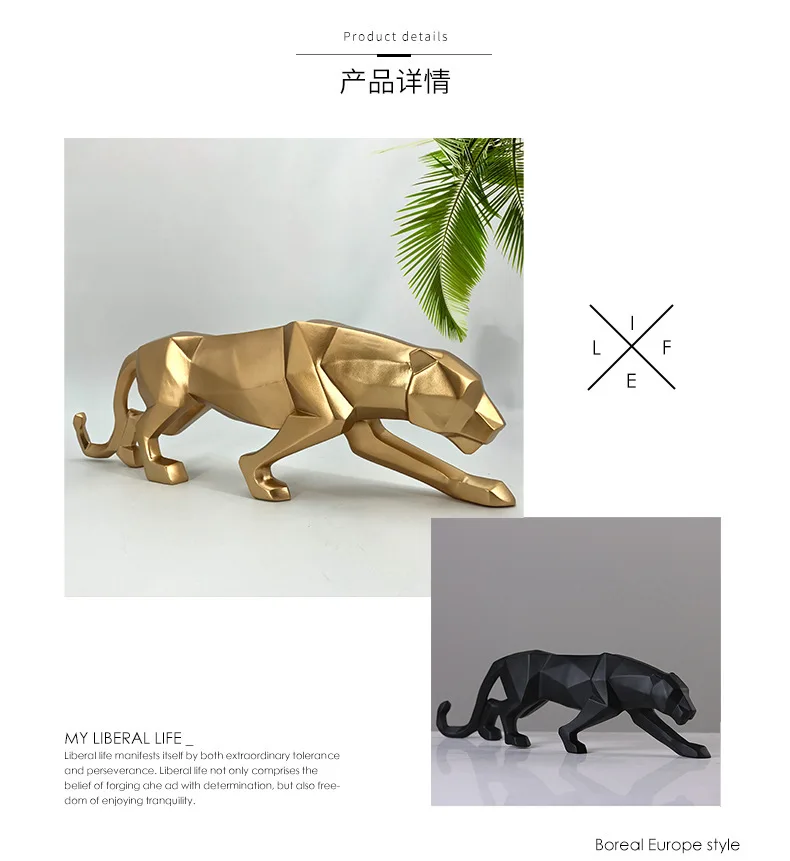 Пантера Статуэтка фигурка животного большой размер абстрактный геометрический стиль смола леопардовая скульптура украшение для дома и офиса подарок