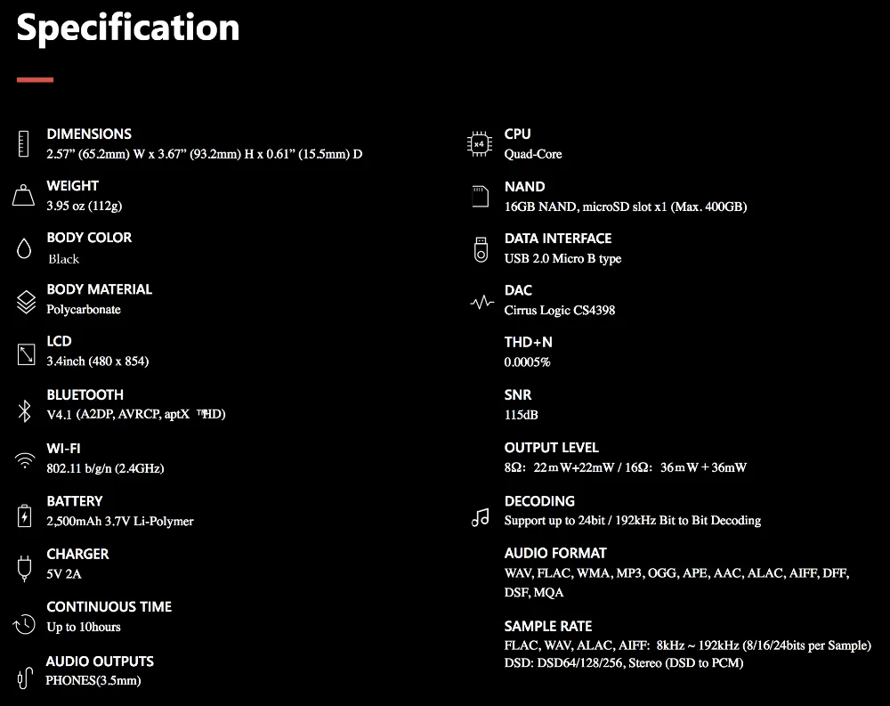 CT10 имеет более современный стиль, чем существующие hi-res плееры. Свежий, Забавный дизайн позволяет устройству плотно прилегать в руку с гладкими контурами, чтобы повысить удобство использования.