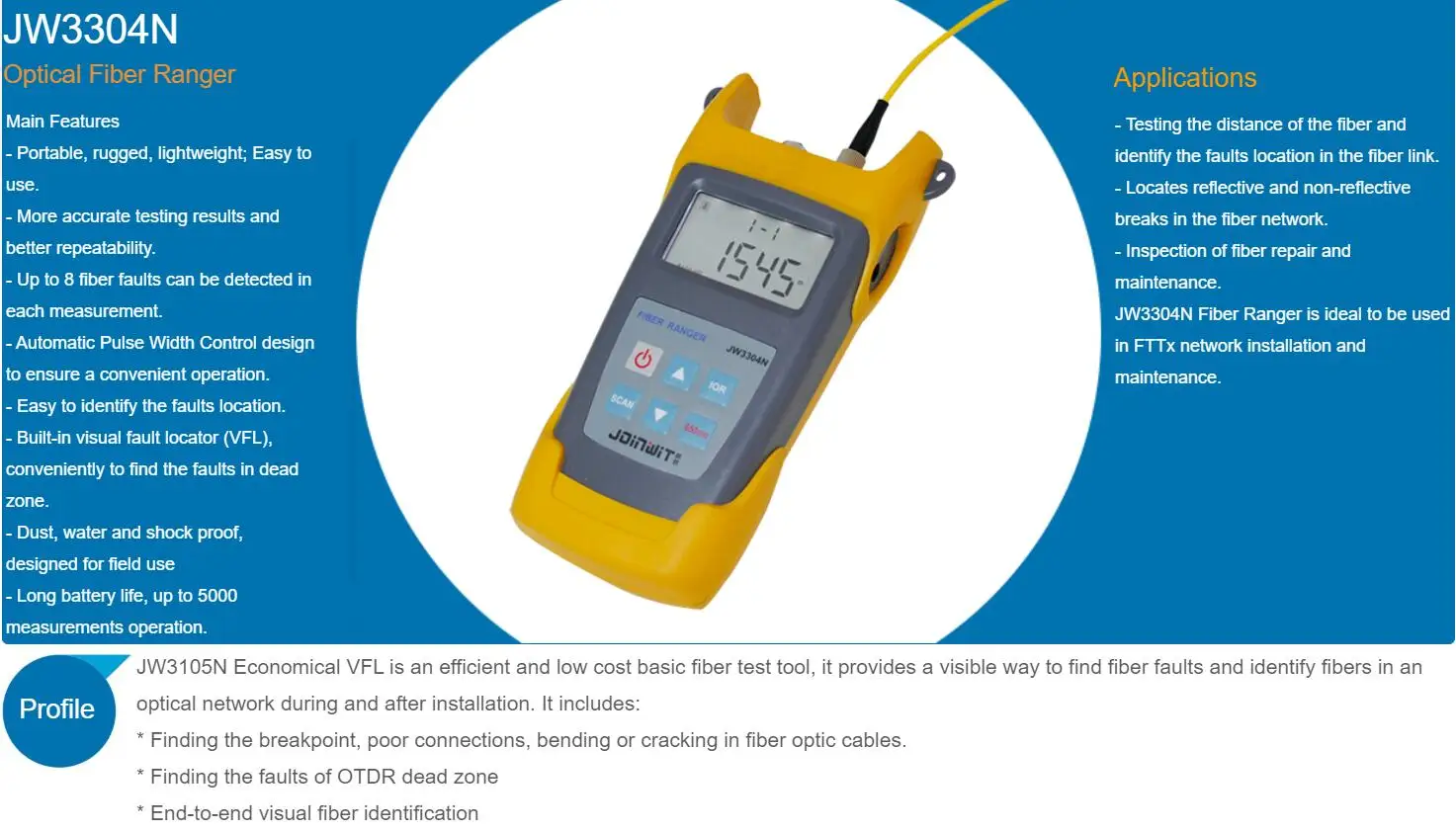 JW3304N Оптическое волокно Ranger Mini OTDR принцип тестер метр с FC/SC/ST Разъем