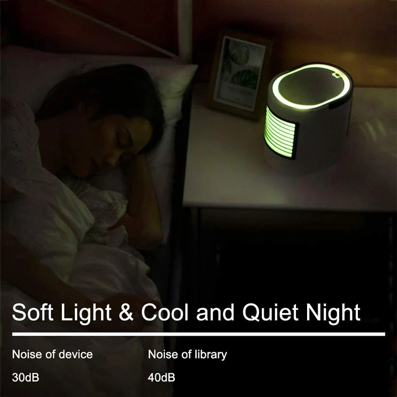 Мини Кондиционер с водяным охлаждением воздушный охладитель вентилятор увлажнение и очистка 3 шестерни скорость ветра мягкий Ночной светильник с низким уровнем шумаПримечание:Не перезаряжается, подключается к usb-кабелю при его использовании, требуется адаптер питания 5V2AФлитер сменныйПодходит для спальни, детской комнаты, офиса и других небольших помещений.В первый раз залейте водой и дайте постоять в течение 20 минут.